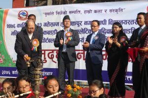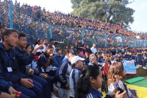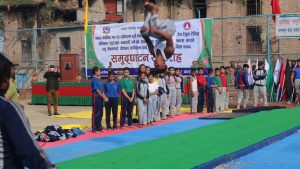 भक्तपुर, कार्तिक १७ गते । भक्तपुर नगर व्यापी विद्यालय स्तरीय खेलकूद प्रतियोगिता आजबाट सुरु भएको छ । नेपाल मजदुर किसान पार्टीका अध्यक्ष एवं वरिष्ठ राजनीतिज्ञ नारायणमान विजुक्छेले प्रतियोगिताको आज उद्घाटन गर्नु हुँदै अध्यक्ष विजुक्छेले जनप्रतिनिधी र खेलाडीहरुको ध्यानाकर्षण गराउँनु हुँदै हामी र हाम्रो शारीरिक र मानसिक रुपले तन्दुरुस्त हुनुको मुख्य कारण हाम्रो देश र जनताको सेवाको निम्ति हो भन्नु भयो । जसरी नक्कल गरेर राम्रो विद्यार्थी हुन सक्दैनौं त्यसरी नै जालसाझी र पक्षपात गरेर अगाडि बढ्न नसक्ने भन्दै अध्यक्ष विजुक्छेले खेलकूद क्षेत्रमा माथिलो क्षेत्रबाट पक्षपात हुन लागेकाले त्यसको खण्डन र निन्दा गर्दै जानुपर्नेमा जोड दिनु भयो । अध्यक्ष विजुक्छेले भन्नु भयो हाम्रो पक्षबाट कुनै किसिमको पक्षपाट गर्नु हुन्न भन्नेकुरा मनमा लिनुपर्छ । भक्तपुरलाई खेलकूदको राम्रो संभावना भएको क्षेत्रको रुपमा पनि विकास गरौं अध्यक्ष विजुक्छेले जोड दिनु भयोे । उद्घाटन सत्रमा प्रस्तुत जिम्यास्टिक खेलको अवलोकन गर्नु हुँदै अध्यक्ष विजुक्छेले प्रदर्शनी आर्कषक र अत्यन्त राम्रो भएको बताउनु हुँदै खेललाई शारीरिक कला प्रदर्शनीको रुपमा लिनुपर्नेमा जोड दिनु भयो । भक्तपुर नगरका ९२ विद्यालयहरु मध्ये ७४ विद्यालयका विद्यार्थीहरुले ६ सय १५ पदकका लागि आयोजना गरिएको सो प्रतियोगितामा १४ वटा खेलहरु समावेस गरीएको आयोजकहरुले बताएका छन् ।