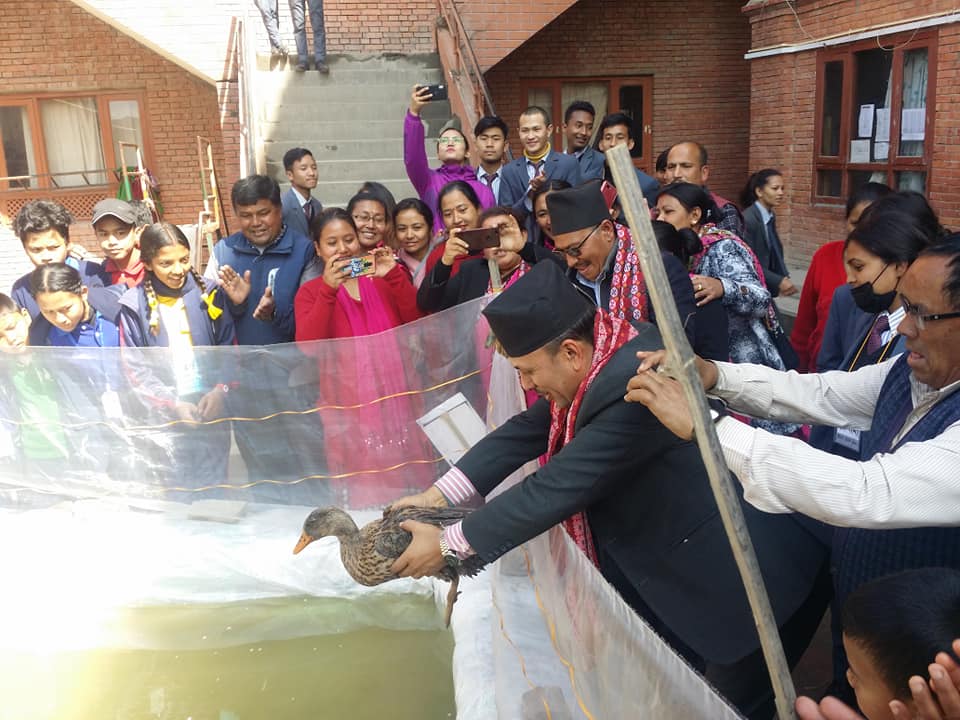 प्रदर्शनीमा विद्यार्थीले हा“स र माछा पालनको मोडल बनाई हा“सको फोहर