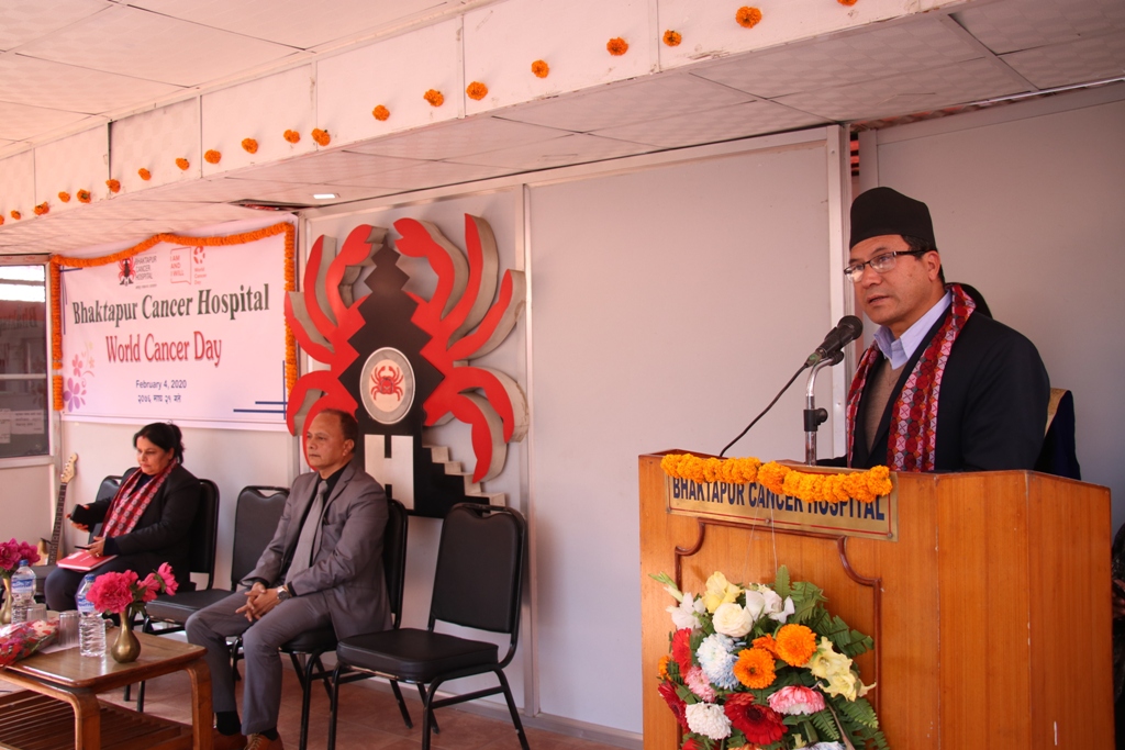 कार्यक्रममा सम्बोधन गर्नुहुँदै भक्तपुर नपाका प्रमुख एवम् भक्तपुर क्यान्सर अस्पताल व्यवस्थापन समितिका अध्यक्ष सुनिल प्रजापतिले निजी क्षेत्र र एनजीओ÷आइएनजीओलाई सरकारले अस्पताल सञ्चालन स्वीकृति दिएकका कारण सरकारी अस्पतालको स्तरोन्नति हुन नसकेको बताउनुभयो ।