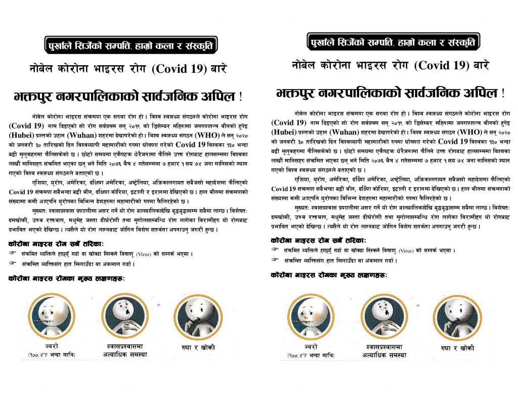 नोबेल कोरोना भाइरस रोग बारे भक्तपुर नगरपालिकाको सार्वजनिक अपिल