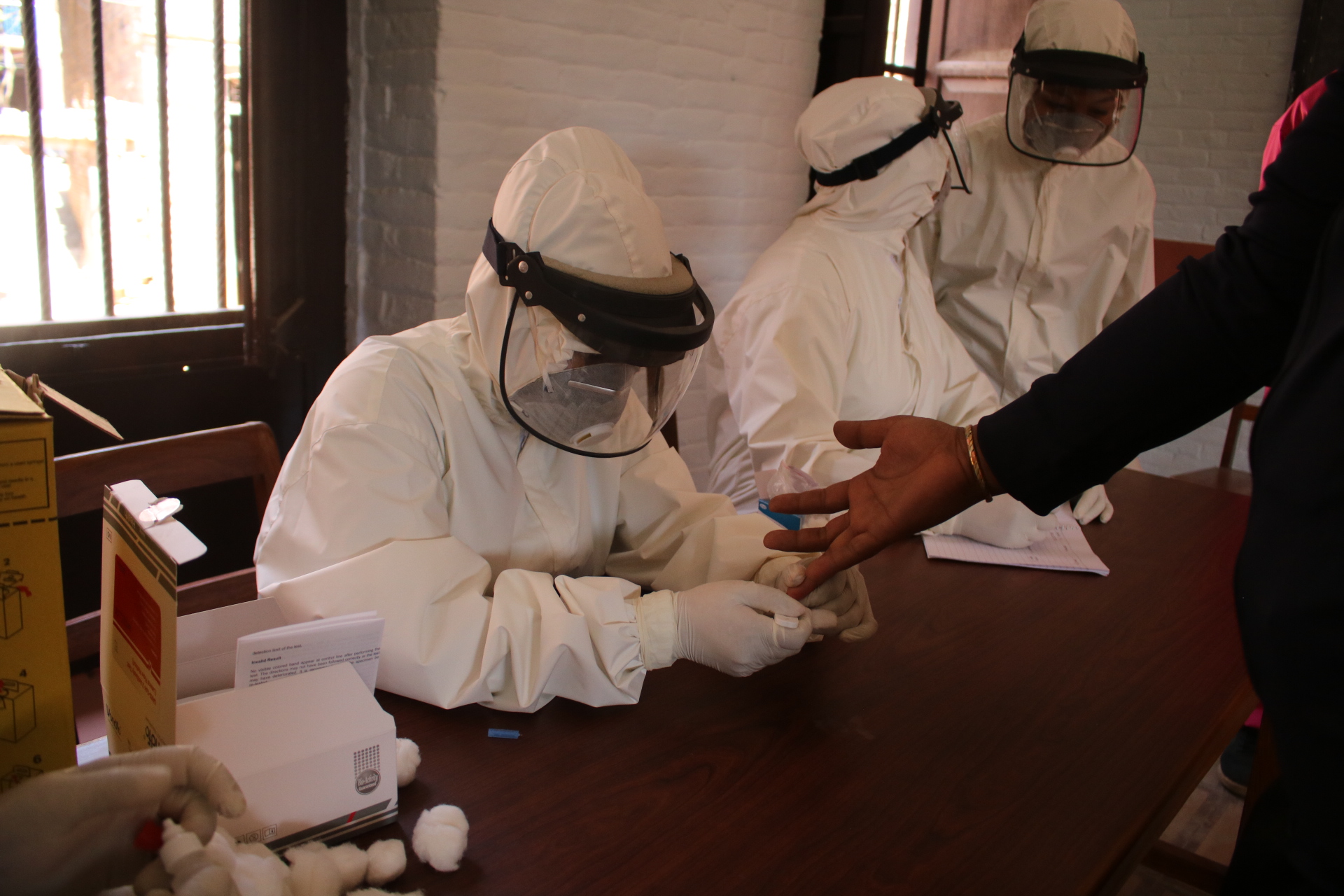 भक्तपुर अस्पताललाई कोरना अस्पतालको हव अस्पतालको रुपमा घोषणा गर्दै संभावित तथा लक्षण देखिएका ब्यक्तिहरुको स्वाब संकलन केन्द्रको रुपमा विकास गर्यो । गत हप्ता देखि भने आडिटीबाट परीक्षण कार्य पनि सुरु गरेको छ । मध्यपुर थिमीले पीसिआर ल्यावको तयारी गरेको छ । जिल्ला स्वास्थ्य कार्यालयको प्राविधिकहरुको टोलीले भक्तपुर नगरपालिकामा सोमबार देखि र सूर्यविनायक नगरपालिकामा आईतवार संभावितहरुको परीक्षण गरिएको थियो । जिल्ला स्वास्थ्य कार्यालयलाई उपलब्ध एक हजार आडिटीको परीक्षण किट मध्ये ६ सय वटा फिल्डमा परीक्षणको लागि परिचालन गरिएको कार्यालय प्रमुख मिजारको भनाई छ ।