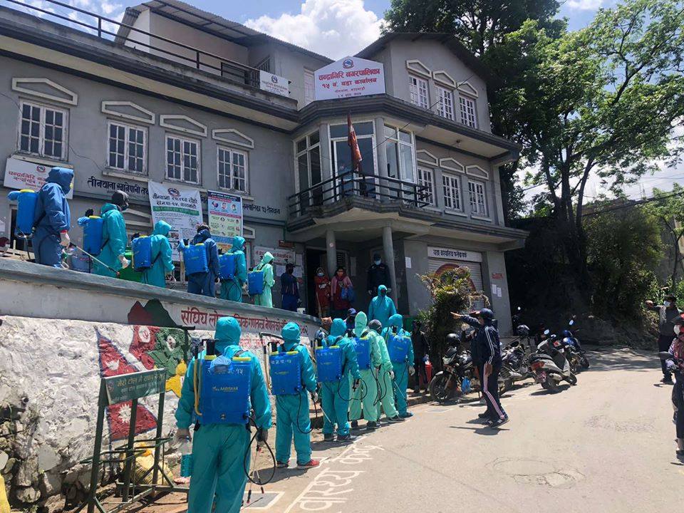 नेपाल इन्जिनियरिङ कलेज (नेक) दुवाकोट चाँंगुनायण भक्तपुरका पूर्व विद्यार्थीको समूहले आइतबार काठमाडौंको चन्द्रागिरी नगरपालिकामा डिस्इन्फेक्सन (औषधि छर्ने) काम गरेका छन् । चन्द्रागिरी नगरपालिकाको वडा नं १५ का वडाअध्यक्ष उतमबहादुर राउतको अगुवाईमा नेकका १५ जना आर्किटेक्ट इन्जिनियरहरुको समूहले डिस्इन्फेक्सन गरेका हुन् । वडाअध्यक्ष राउत पनि नेकका पूर्व विद्यार्थी थिए । अध्ययन सम्पन्न गरेका इन्जिनियर (आर्किटेक्ट)हरूले सुरक्षाको प्रबन्ध मिलाई काम गरेका हुन् । वडा अध्यक्ष राउतले वडाबासीको सुरक्षाका लागि यस्तो काम गरेको जनाए । वडाबासीलाई विश्वव्यापी संकटको रुपमा आइरहेको कोरोना भाइरस (कोभिड १९) को संक्रमणबाट जोगाउन सहज होस् भनी यस्तो काम गरेको उनले जनाए । निलो टोपी र खैरो मास्कले अनुहार पूरै छोपी उनीहरुले दिनभर डिस्इन्फेक्सन गरेका थिए ।