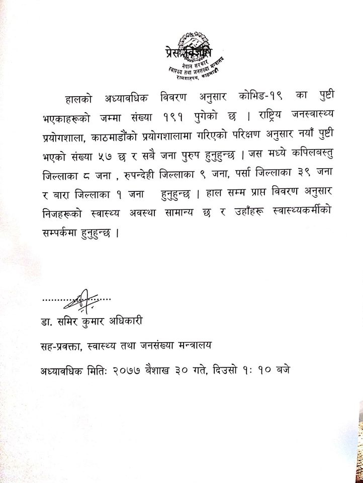 काठमाण्डौ, बैशाख २० गते