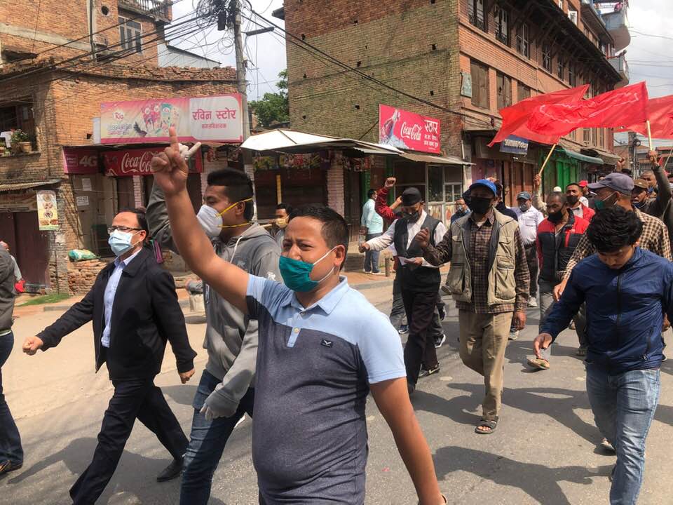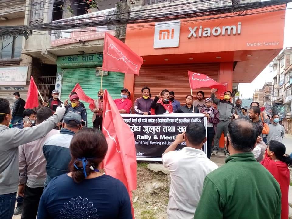 भारतीय हस्तक्षेप विरुद्ध भक्तपुरमा जुलुस र सभा आयोजना भएको छ । कोरना भाइरसको जोखिम व्यवस्थापनकोक्रममा लकडाउनमा रहेका भक्तपुरबासी आज विरोध जुलुसमा निस्केका हुन । भक्तपुरको कमलविनायक क्षेत्रबाट जुलुस प्रदर्शन गर्दै सूर्यविनायक चोकमा पुगेर विरोध सभा आयोजना गरेको हो । लकडाउन उलंघन भएको भन्दै प्रहरीले रोक्न खोजे पनि देशको सार्वभौमिकता रक्षाका सवालमा लक डाउनको प्रवाह नगरी नेपाल मजदुर किसान पार्टीका नेता, कार्यकर्ताहरुले जुलुस आयोजना गरेको थियो । जुलुसले भक्तपुर नगर परिक्रममा गर्दै सूर्यविनायक चोकमा पुगेका थिए । जुलुसमा सहभागि समुदायले भारतीय विस्तारवाद मुर्दाबाद, कालापानी, लिपुलेक, लिम्पियाधुरा नेपालकै हो, कालापानीबाट भारतीय सेना तुरुन्त हटाउ, भारतीय सिमा अक्रिमण बन्द गर लगायतका नारा लगाएका थिए ।