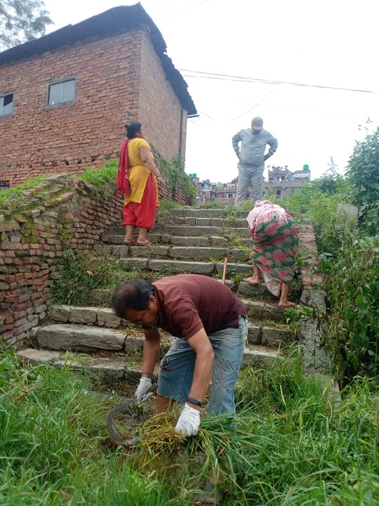 कृष्ण भजन मण्डल चुपिंघाट भक्तपुरको सक्रियतामा सरसफाई गरिएको हो । सरसफाईमा भजन मण्डलसँंग सम्वद्ध एक दर्जन भन्दा वढी बुढाबुढीहरु सहभागी रहेका थिए । भजन मण्डलमा जाँंदा चिप्लेर लड्ने, घाँंसमा सर्पको डर, फोहोरलगायतका कारण सरसफाई गरिएको डा इन्दुल कसीले जनाए ।