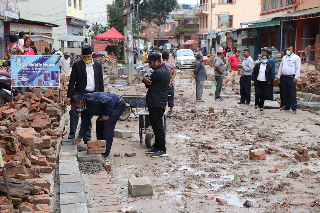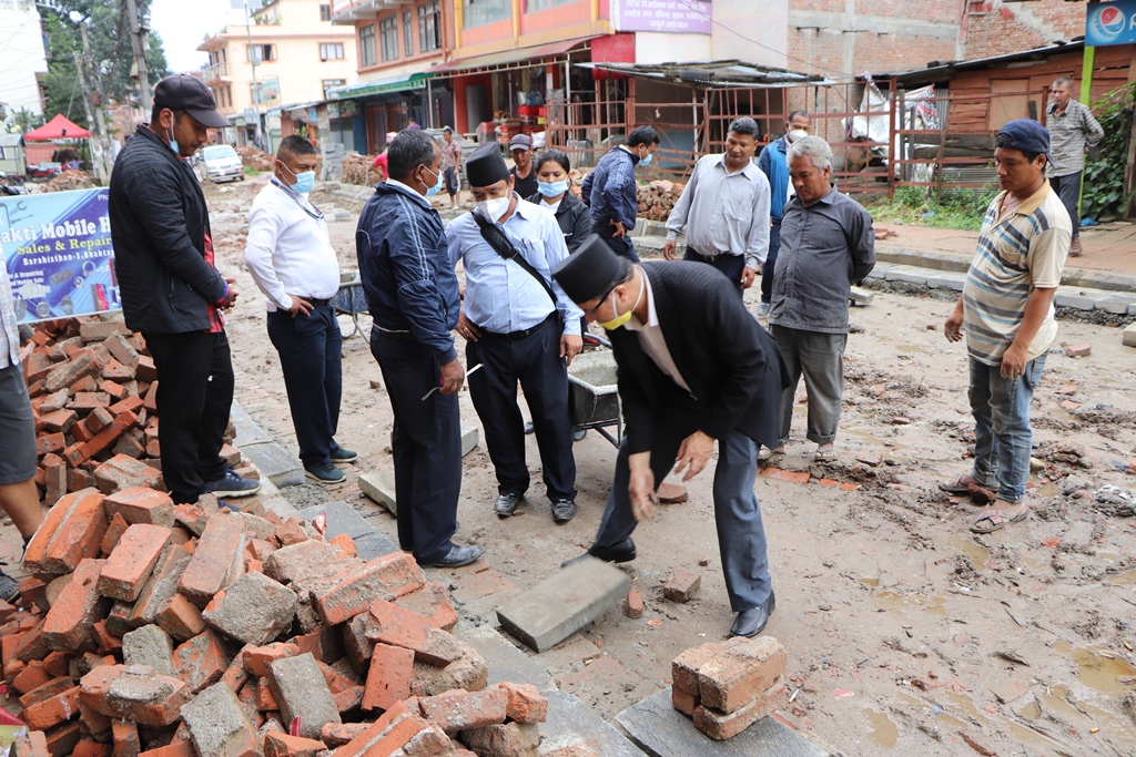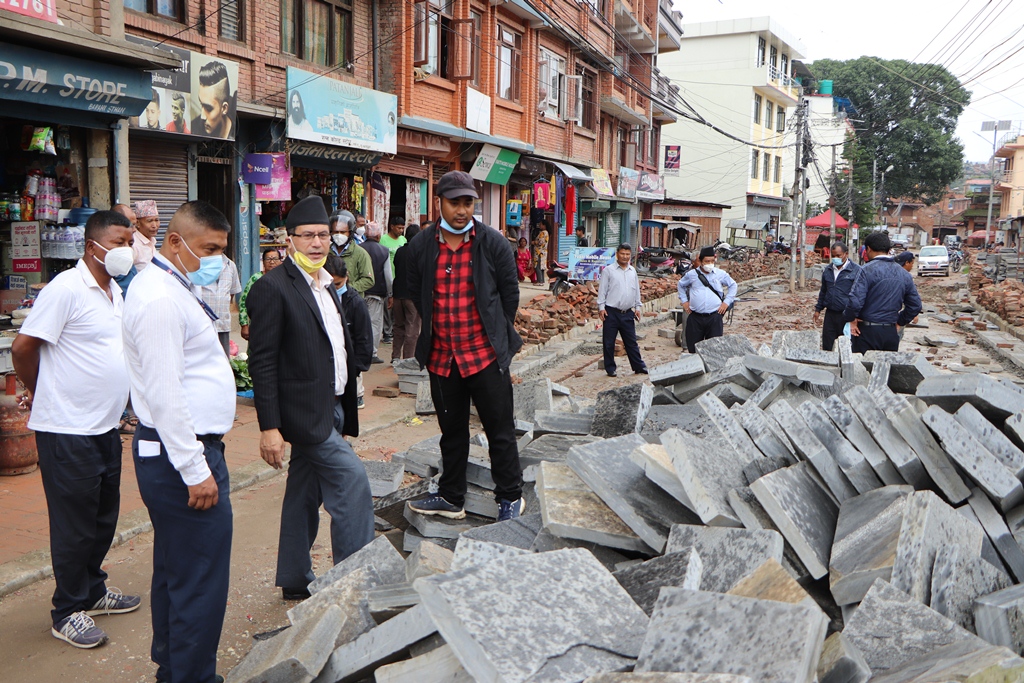 नेपाल सरकारको बजेटअन्तर्गत ठेकेदार मार्फत नगरका विभिन्न ठाउँहरुमा भइरहेको ढुंगा छपाई कार्यमा कम गुणस्तरको ढुंगा प्रयोग भएको जनगुनासो सुनिएपछि भक्तपुर नगरपालिकाका प्रमुख सुनिल प्रजापतिले बिहीबार ती क्षेत्रहरुमा स्थलगत निरीक्षण गर्नुभयो ।