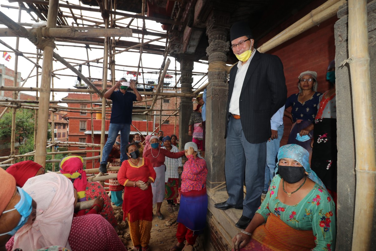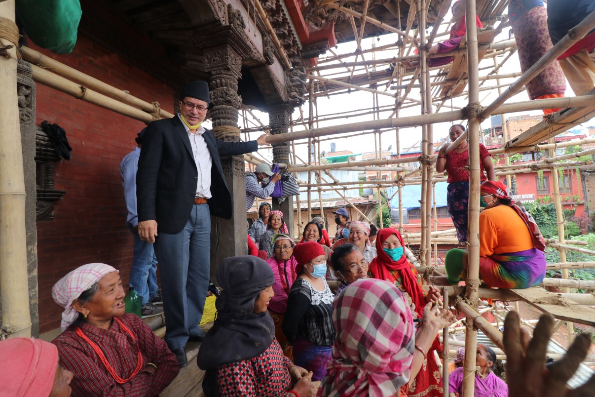 नगर प्रमुख प्रजापतिद्वारा ङातापोल मन्दिर जीर्णोद्धार कार्यको निरीक्षण