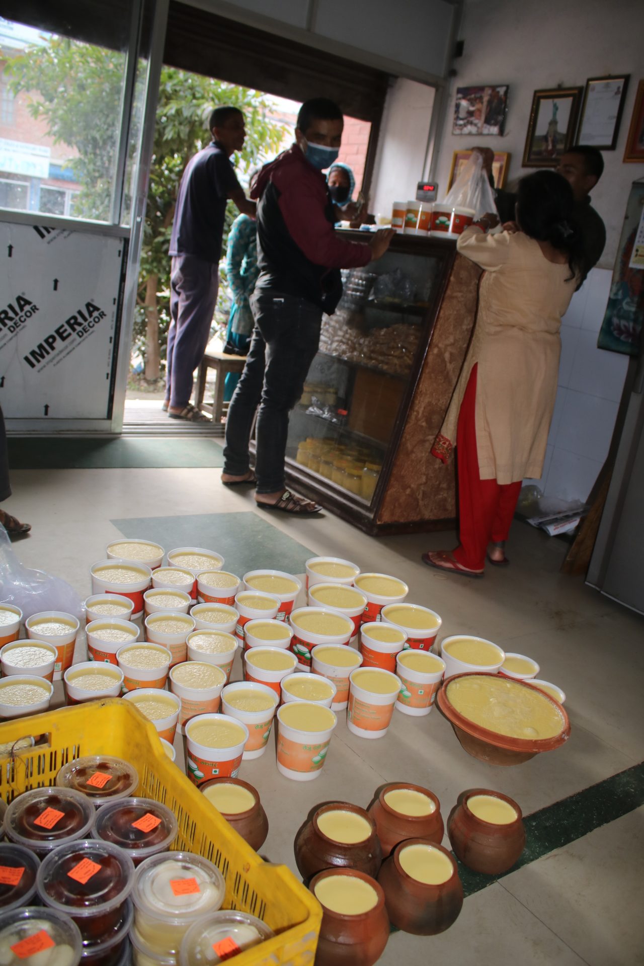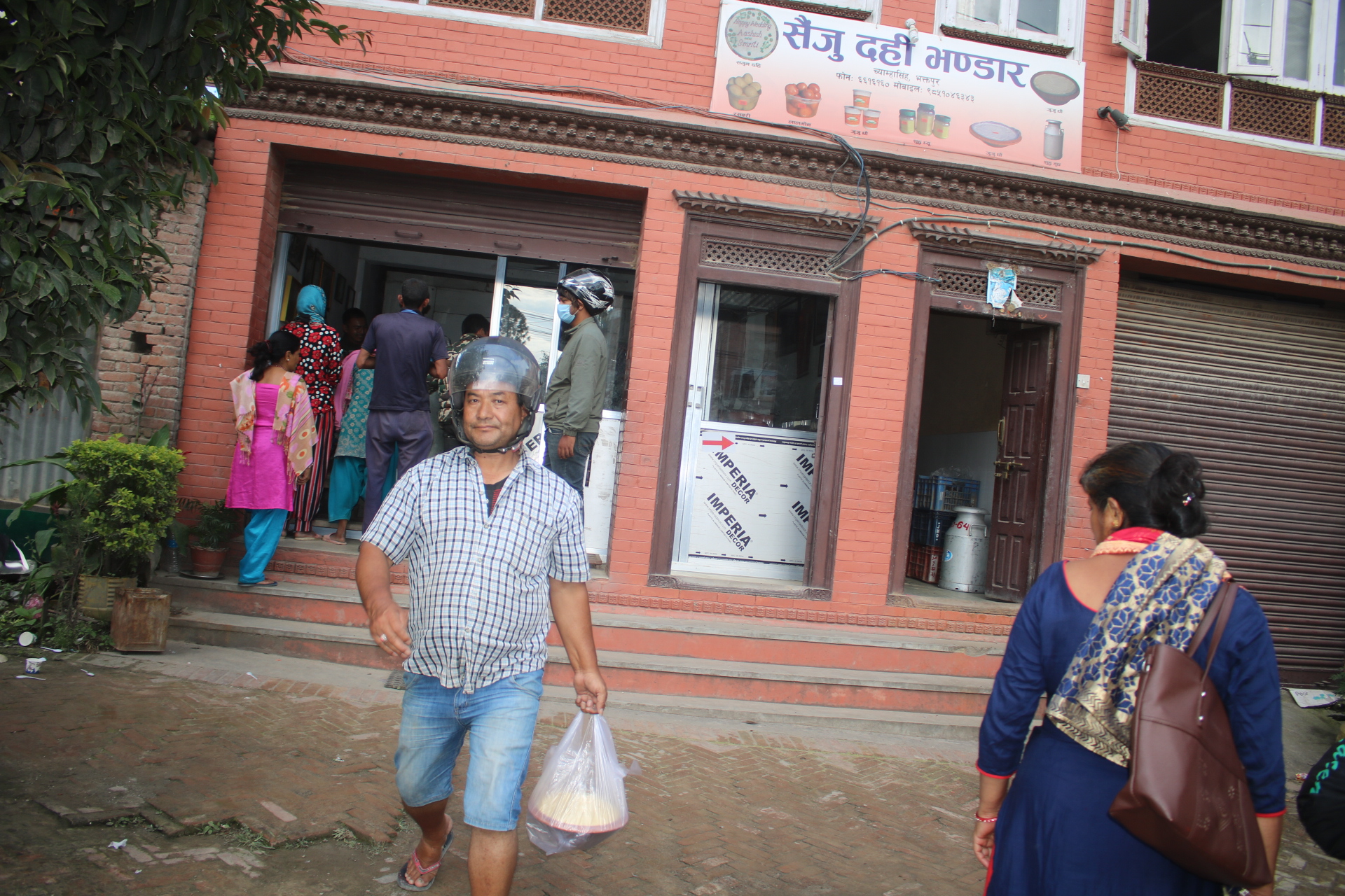 बाक्लो दुधले जुजु दही बनाउने र यसबाट बन्ने दही पनि मिठो हुने भए पनि अहिले भक्तपुरमा पर्याप्त दुधको अभाव रहेकाले चितवन, नवलपरासीबाट दूध झिकाउदै आएको बताउँदै उहाँले लक डाउन अलि खुकुलो भएकाले पर्याप्त दूध उपलब्ध भइरहेको बताउनु भयो । माटोको भाडोमा बनाएको दहीमा पानी स्वस्ने भएकाले बढी जम्ने र प्लास्तिकको भाडामा बनाएको दहीमा पानी रहने भए पनि स्वादमा फरक नहुने उहाँको भनाई छ । कोरना भाइरसको जोखिमका कारण खेर गइरहेको किसानको दुधबाट दही मात्र नभई पनिर, ध्यू, लालमोहर लगायत विभिन्न प्रकारका मिठाइहरु बनाउनेमा दही व्यवसायीहरु आकर्षित हुन थालेको उहाँले बताउनु भयो । घरेलु उद्योगको रुपमा भक्तपुरमा ६५ उद्योगहरुले दही उत्पादन गर्दै आएको संघसँग अभिलेख रहेको उहाँले बताउनु भयो । ती उद्योगहरु मध्ये एक दर्जन जतिले राम्रो दही उत्पादन गर्दै आएको भए पनि अन्य उद्योगहरु भने सामान्य रुपमा मात्र सञ्चालन भइरहेको उल्लेख गर्दै सैजू दही भण्दारले मात्रै आज ५ हजार लिटर दुधको दही उत्पादन गरी बिक्रि वितरण गर्दा पनि अभाब रहेको बताउनु भयो ।