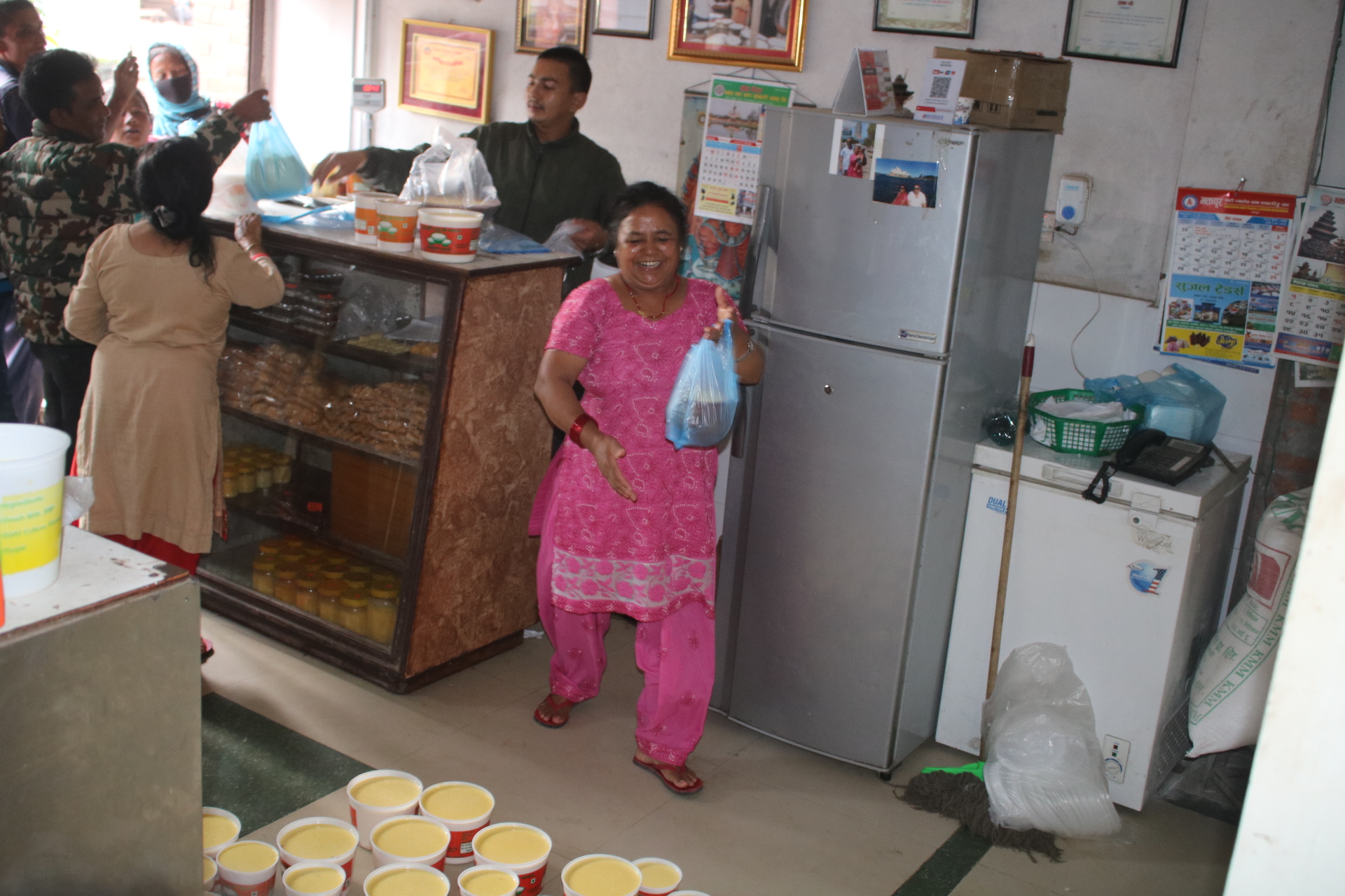 अरु बेला हजार लिटर दुधबाट दही बनाएर बजार लाने गरेका भक्तपुा ब्यवसायीहरुले आज एक्कै दिन एक लाख ३० हजार लिटर भन्दा बढी दूधबाट दही बनाएर बजार लगेको बताएका छन् । काठमाण्डौ उपत्यकामै भक्तपुरको जुजु धौ भने पछि लोकप्रिय र मनपराउने भएकाले यसको गुणस्तरीयतालाई ध्यान दिन्दै संघको तर्फबाट व्यवसायी प्रवर्धन हुँदै आएको उहाँले बताउनु भयो । बजारमा पाइने सबै किसिमका दही जुजु धौ नभएको उल्लेख गर्दै उहाँले जुजु धौं बन्नका लागि दूधको गुणस्तरीयता र यसबाट बनाउने तरिकामा दही बनाउनेकर्मीको ज्ञानेन्द्रीय अंगहरुको विशेष परिचालन हुने बताउनु भयो । जुजु धौं बनाउन विशेष मेहनत चाहिने र मूल्य पनि महंगो हुने उल्लेख गर्दै उहाँले बजारमा सामान्यतया दही मात्र उपलब्ध हुने भए पनि ती दहीहरु पनि स्वादिस्त रहेको बताउनु भयो । संघमा आबद्ध रहेका ब्यवसायीहरुले दही उत्पादनमा विशेष मेहनत गरेकाले स्वादिलो भएको तर संघमा आबद्ध नभएका एवं बाहिरबाट बनाउने दही बारे आफुहरुले भन्न नसकिने बताउनु भयो । आफूहरुले दुधबाट बनाएका पाउडरबाट बनाउने दही पनि राम्रै बनाउने भएकाले दहीको माग दिनप्रदिन बढ्दै गएको बताउनु भयो । जति माग बढे पनि घरेलु र हस्तकला उद्योगकै रुपमा घर परिवारकै सदस्यहरुको हातबाटै दही बनाउँदै आएकाले दहीको स्वाद र गुणस्तरीयता कायम गर्न सकिरहेको उहाँले बताउनु भयो ।