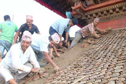 परम्परागत निर्माण सामग्री, स्थानीय कालिगढ, डकर्मी, सिकर्मीहरु र समुदायको सक्रिय सहभागितामा आज ङातापोल (पाँच तल्ले) मन्दिरको जीर्णोद्धार कार्य पूरा हुने भएको छ । जीर्णोद्धारका लागि बाधिएको खत झिक्ने एवं सरसफाई कार्य पूरा गर्न भने केही दिन लाग्ने छ । त्यसमाथि मन्दिरको सिडिहरुमा ढुंगा छाप्ने, मन्दिरको टोरणाहरुमा परम्परागत रंगरोगन लगाउने काम भने बाँकी नै छ । परम्परागत शैलीमा रंगरोगन गर्न एक वर्ष लाग्ने भएकाले तथा अहिले वर्षायाम रहेकाले अन्य काम छोडेर झिंगति छाउने र भूकम्पले चर्काएको भागहरुको मर्मत कार्य भने आज पूरा गर्ने भएको हो ।