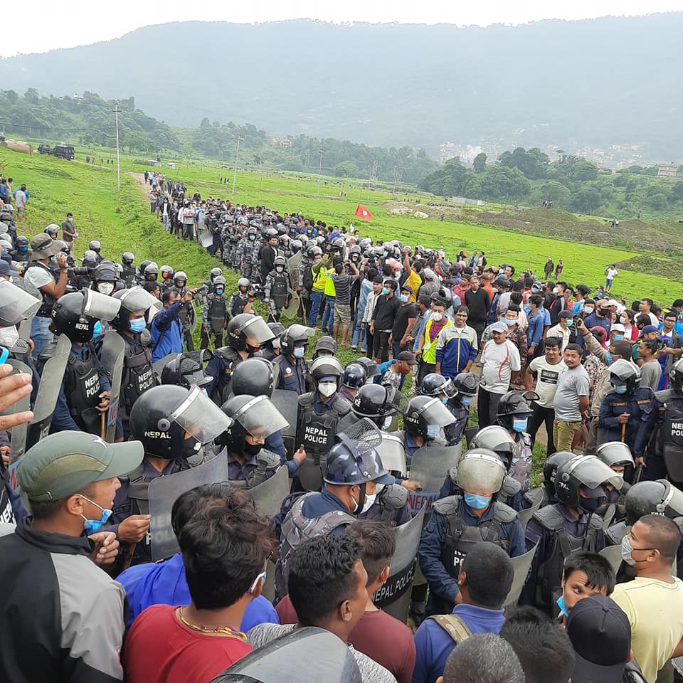 करिव दुई हजारको संख्यामा सहभागि रहेका महिला तथा बालबालिकाहरु बीच प्रहरीले अश्रुग्यास प्रहार गरेकोे खोकना जनसरोकार समितिका अध्यक्ष नेपाल डंगोलले बताका छन् । उहाँले कोरना भाइरसको विश्वव्यापी जोखिममा भोक भन्दा परियोजना ठूलो नभएको जनाएको छन् । कोरनाको त्रासमा घरभित्र थुनेर खोकनाबासीहरुको अमूल्य जमिनमा माटो पुर्ने काम भएपछि खोकनाबासीहरु रोपाईमा उत्रेको उहाँले जनाए । खोकनामा बाहिरी चक्रपथ, काठमाण्डांै तराई दु्रतमार्ग, १३२ केभी प्रशारणलाईन, स्मार्ट सिटी लगायतका योजना सरकारले अगाडी सार्दा खोकनाबासीहरु आन्दोलनमा रहेका हुन् । विकासको नाममा साँस्कृतिक शहर र नेवार जातिमाथि अतिक्रमण गर्न नहुने भन्दै खोकनाबासीहरु चरणबद्ध आन्दोलमा रहेका हुन । एउटै ठाउँमा विभिन्न सरकारी परियोजना सञ्चालन गर्दा खोकनाबासीहरुले आफ्नो जीविकोपार्जन, धर्म, संस्कृति, जात्रा पर्व र सभ्यता एवं मौलिकता गुम्ने भन्दै सरकारी कदमको बिरोध गर्दै आएका छन् ।
