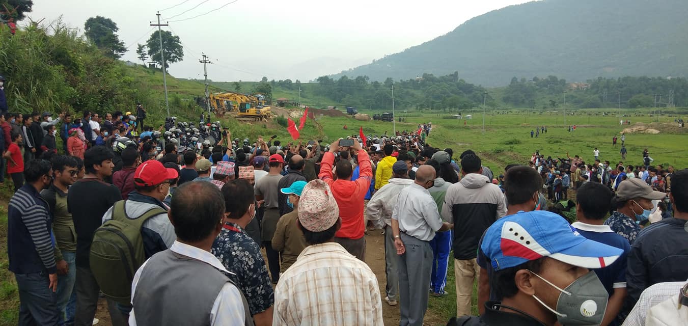 सरकारी परियोजनाको नाममा बाँझो रहेको आफ्नै खेतहरुमा रोपाइ गर्न पुगेका खोकनाबासी र प्रहरी बीच झडप हुँदा प्रहरीले शनिबार ७ वटा अश्रु ग्यास प्रहार गरेको बताइएको छ । प्रहरीसँगको झडपमा काठमाण्डौ उपत्यका सडक विस्तार विरोध संघर्ष समितिकी नेतृ विद्या श्रेष्ठ समेत घाईते भएकी छिन । खोत जोत्ने किसानलाई हस्तक्षेप होइन देशको सिमा सुरक्षा गर्न सिमा क्षोत्रमा जाउँ भन्दै प्रहरीसँग खोकनाबासीहरुले प्रहरीसँग प्रतिवाद गरेका छन् । असार १५ गतेलाई सरकारले घोषणा गरेको राष्ट्यि धान दिवसको रुपमा राष्ट्यि रोपाइ महोत्सव मनाएको दिनमा पनि खोकनावासीहरुले यसै गरी प्रहरीसँगको मुठभेड बीच सो क्षेत्रमा रोपाई गरेका थिए ।