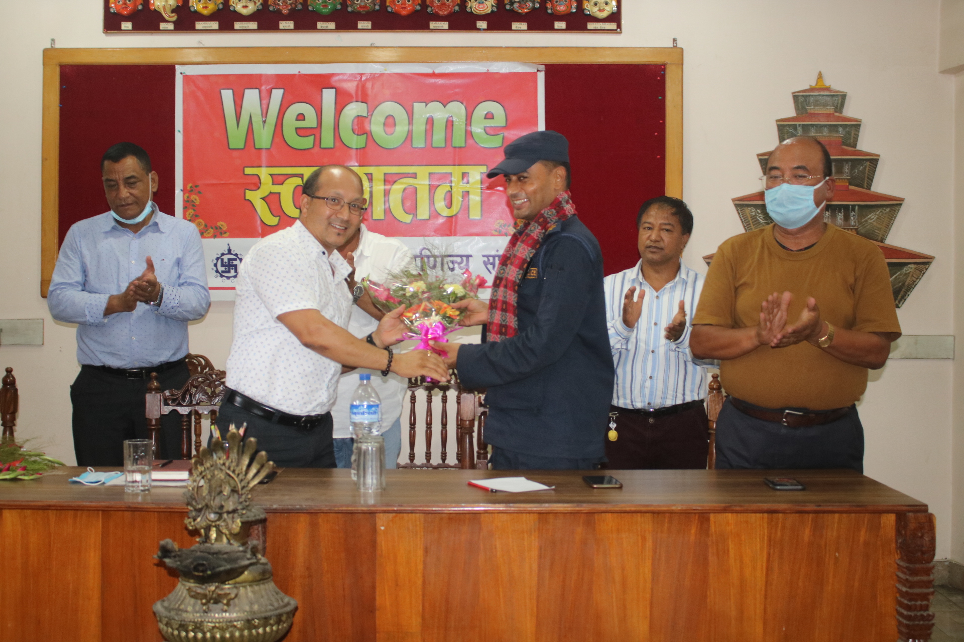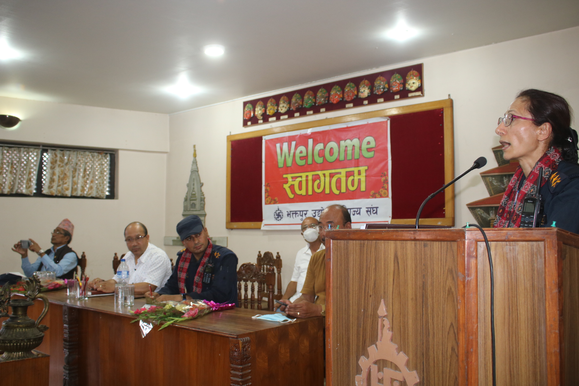 भक्तपुर उद्योग वाणिज्य संघ भक्तपुरले महानगरीय प्रहरी परिसर भक्तपुरका नवनियुक्त प्रहरी उपरीक्षक तारादेवी थापा, थिमी बिटका प्रहरी नायव उपरिक्षक ऋणीराम कडेंललाई स्वागत गर्दै संघमा विगत ३०सम्म काम गरेका संजय जोन्छेलाई शुक्रवार विदाई गरेको छ । संघको सभाहलमा आयोजित सो सभामा भक्तपुरको आर्थिक सामाजिक, पर्यटन विकासको लागि शान्ति सुरक्षाको प्रत्याभूति हुन आवश्यक भएको कुरालाई आत्म साथ गर्दै आज नवनियुक्त प्रहरी नेतृत्वलाई स्वागत गरेको उल्लेख गर्दै सघका अध्यक्ष प्रदिप श्रेष्ठले कोरना भाइरसको विषम परिस्थितीमा भक्तपुरका उद्योगहरु नाफा र रहरले भन्दा कर र सेवा भावले सञ्चालन भइरहेको बताउनु भयो ।
