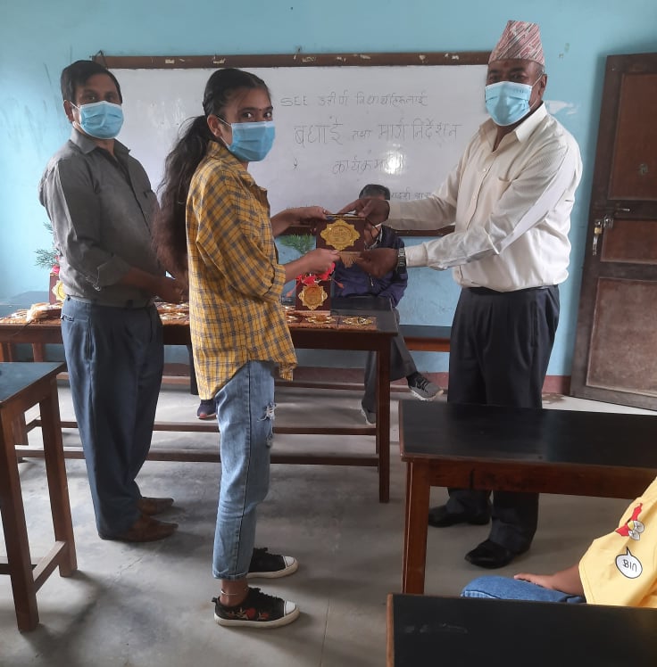 आदर्श आजाद माध्यमिक विद्यालय भक्तपुरले एसईई परीक्षा २०७७ मा सफलता प्राप्त गरेका विद्यार्थीहरुलाई शुक्रबार बधाई ज्ञापन तथा मार्ग निर्देशन कार्यक्रम आयोजना गरेको छ । कार्यक्रममा सहभागि विद्यार्थीहरुलाई विद्यालय व्यवस्थापन समितिका अध्यक्ष विश्वराम कवांले मायाको चिनो प्रदान गर्नु भयो ।