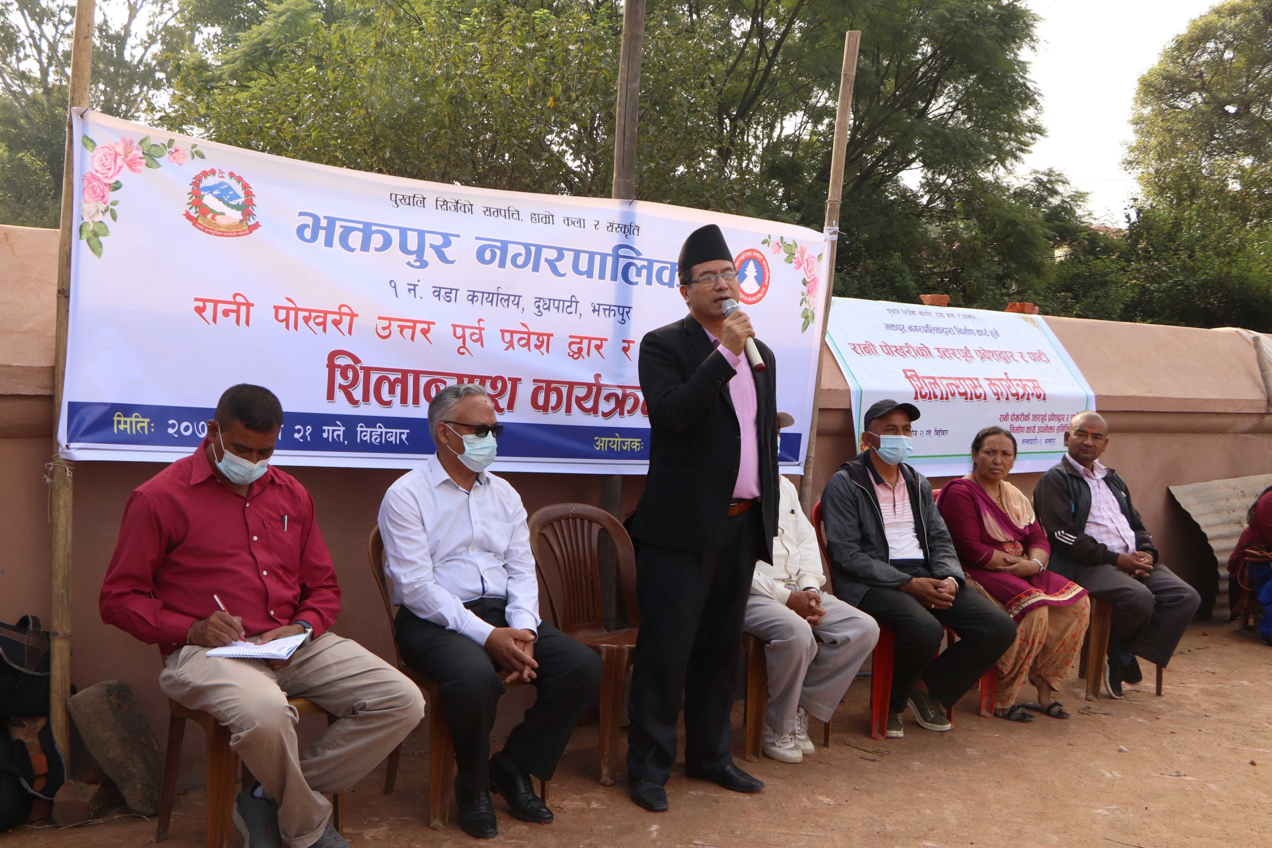 भक्तपुर नगरपालिकाका प्रमुख सुनिल प्रजापतिले भक्तपुर नपा वडा नं. १ सल्लाघारीस्थित भक्तपुरको ऐतिहासिक रानीपोखरीको उत्तरपूर्व प्रवेशद्धार र पाटी निर्माण कार्यको बिहीबार एक समारोहबीच शिलान्यास गर्नुभयो ।