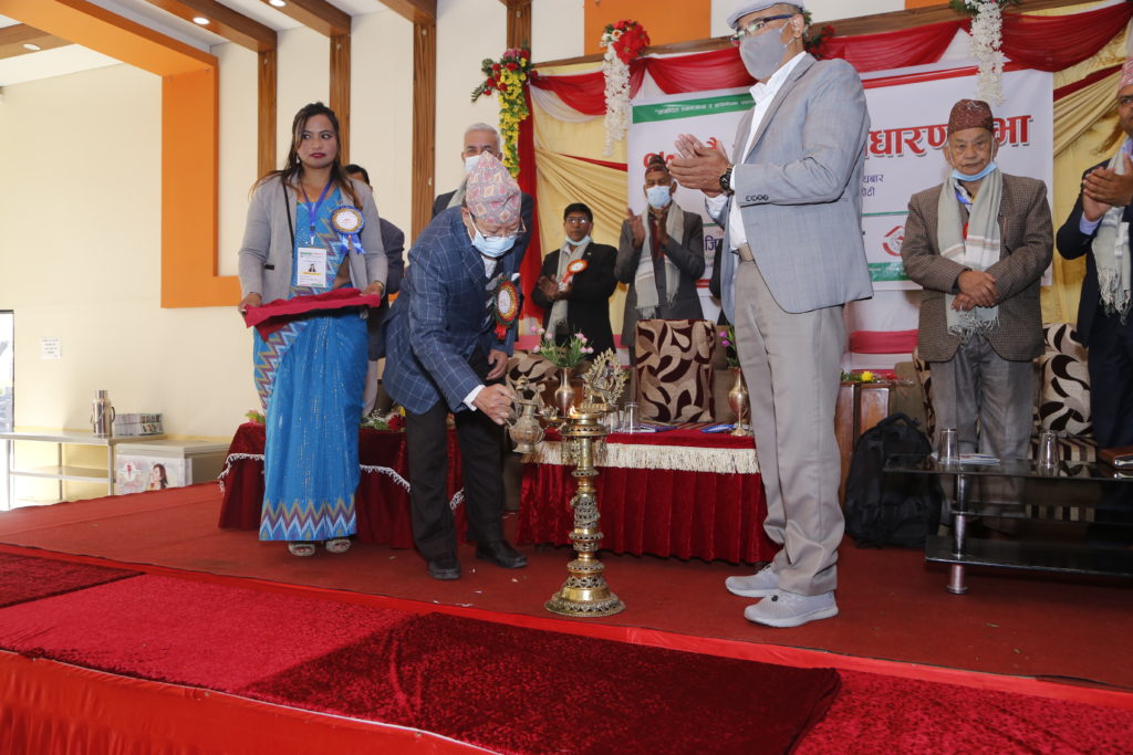 सभाको सभापतित्व गर्दै संघका अध्यक्ष कृष्ण गोविन्द लाखाजुले सन्दर्भ व्याजदर र सेवा शुल्क तोक्ने सहकारी विभागको कार्यले सदस्यले सदस्यलाई शोषण हुनबाट सचेत बनाएको कुरा बताउनुभयो । वहाँले एक व्यक्ति एक सहकारीको व्यवस्था व्यवहारिक नभएकोले संशोधन हुनुपर्ने विचार राख्दै सहकारीको आयकर ५ प्रतिशत हुदाँ सहकारी संघ संस्थामा अग्रिम व्याज करकट्टी १५ प्रतिशत नै कायम रहनु न्याचित नभएको कुरा बताउनुभयो । संघका उपाध्यक्ष हरी बल्लले स्वागत मन्तव्य दिदैं नेफ्स्कून र सहकारी बैंकको अस्वस्थ प्रतिस्पर्धाले सहकारी सहकारी बीच नै प्रतिस्पर्धा चलेको विचार राख्नुभयो ।