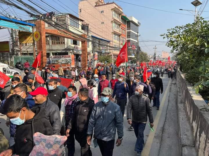 सो सभा पूर्व सांसद प्रेम सुवालको नेतृत्वमा माईतिघर देखि बानेश्वरसम्म एमसीसी विरुद्ध नारा जुलुस लगाउँदै बानेश्वसम्म जुलुस आयोजना गरेको थियो सो सभामा नेमकिपाका केन्द्रीय सदस्य नारायण महर्जनले एमसीसी विरुद्ध नेमकिपाले देशभर आन्दोलनको रुपमा जुलुस र सभा गर्नुको कारणहरु बारे प्रष्ट पारेका थिए । यसी बीच नेमकिपाका केन्द्रीय सदस्य एवं भक्तपुर नगरपालिकाका प्रमुख सुनिल प्रजापतिको नेतृत्वमा पूरानो बानेश्वर देखि पानी ट्यांकी संसद भवन अगाडीसम्म एमसीसी विरुद्ध नाराजुलुस गर्दै सभा आयोजना गरेको थियो भने अर्को समुहले कोटेश्वरबाट प्लेकार्ड र झण्डा सहित नारा जुलुस गर्दै मिन भवनमा सभा आयोजना गरेको थियो ।