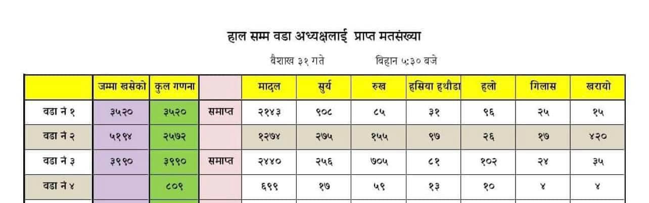 वडा नं.२ र ४ पनि भारी मतले मादलको विजयी