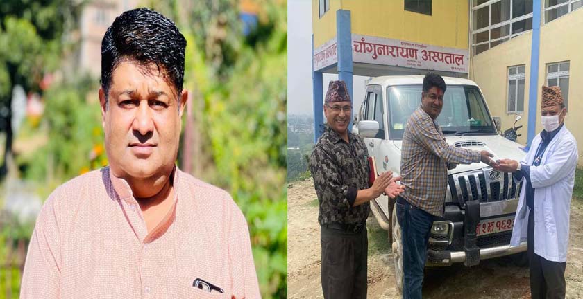 चाँगुनारायणका उपप्रमुख बुढाथोकीले सुविधाको गाडी अस्पताललाई दिए