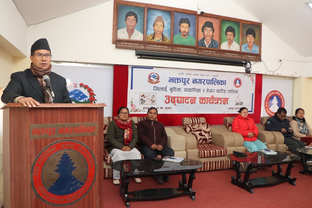 भक्तपुर नगरपालिकाका प्रमुख सुनिल प्रजापतिले भक्तपुर नगरपालिकाद्वारा सञ्चालित आधारभूत सिलाइ, बुटिक, पाक शिक्षा र हेयर कटिङसम्बन्धी तालिमको संयुक्त रुपमा बुधबार उद्घाटन गर्नुभएको छ ।
