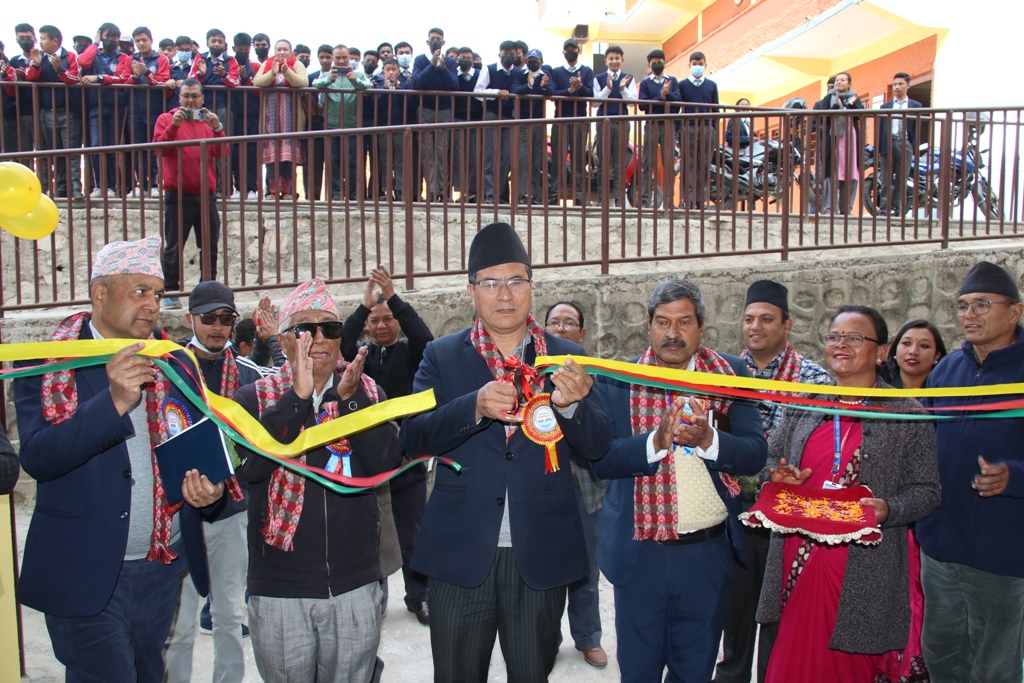 भक्तपुरको च्याम्हासिंह र कमलविनायकमा बनाइएको बागीश्वरी माविको नयाँ भवनको बागीश्वरी कलेज व्यवस्थापन समितिका अध्यक्ष एवम् भक्तपुर नगरपालिकाका प्रमुख सुनिल प्रजापतिले ताम्रपत्र अनावरण र रिबन काटेर उद्घाटन गर्नुभएको हो ।