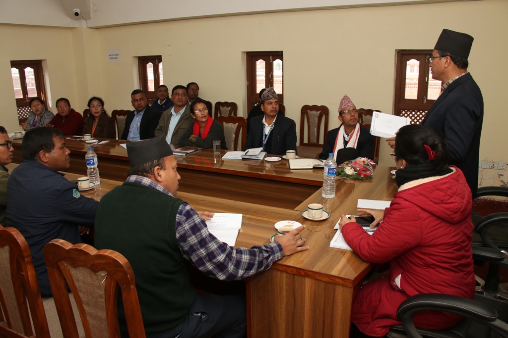 प्रजिअ रिजालको स्वागतमा आयोजित परिचयात्मक कार्यक्रममा बोल्नुहुँदै प्रमुख प्रजापतिले भक्तपुरको शान्ति सुरक्षा, जात्रा व्यवस्थापन, सांस्कृतिक सम्पदा सुरक्षालगायतका विषयमा जिल्ल्ला प्रशासन कार्यालय र नगरपालिकाबीच सहकार्य हुने विश्वास व्यक्त गर्नुभयो ।