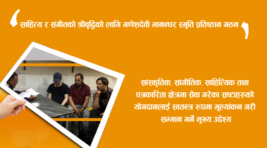 साहित्य र संगीतको श्रीवृद्धिको लागि गणेशदेवी मानन्धर स्मृति प्रतिष्ठान गठन