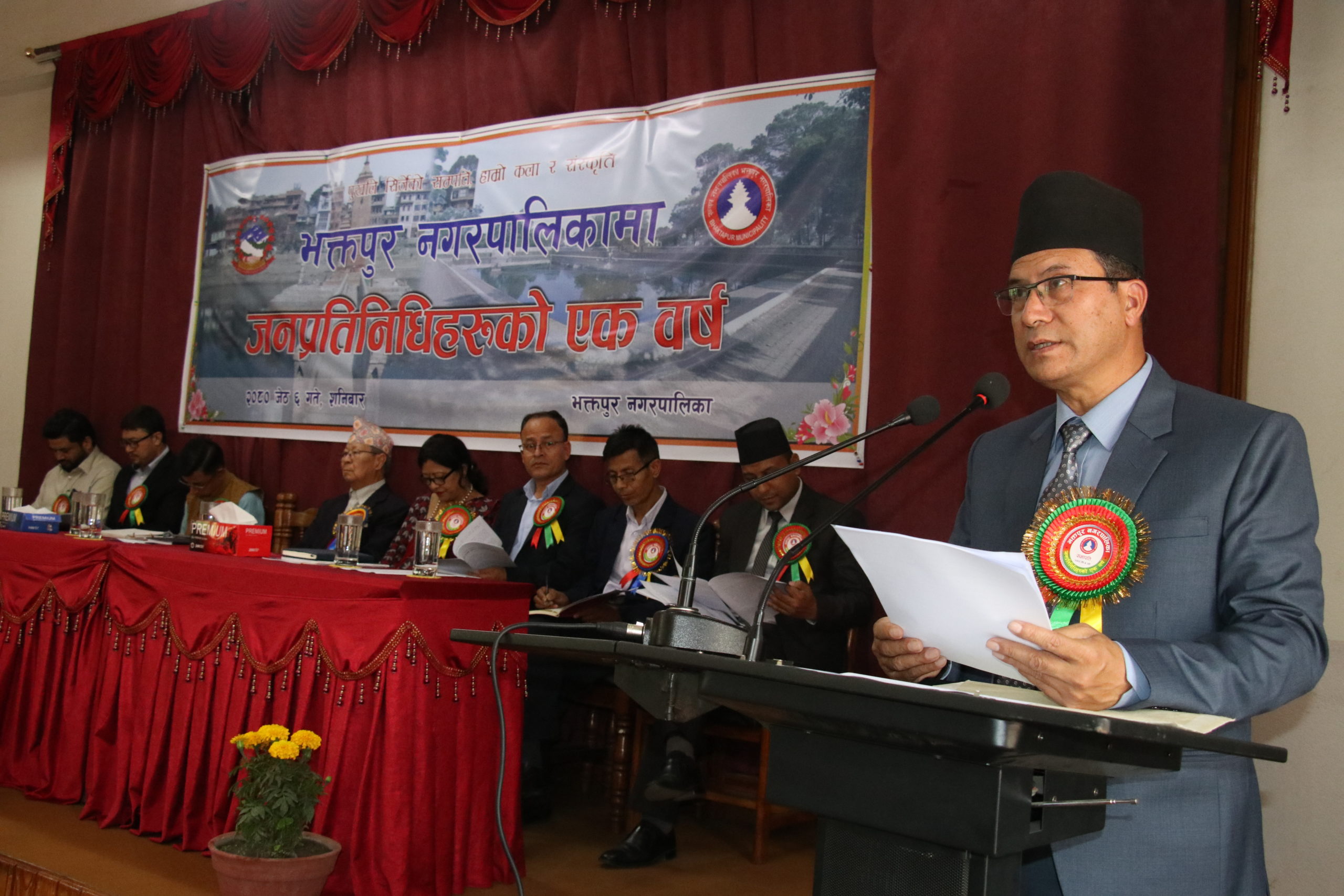 संघीयताको कार्यान्वयनपछि भएको स्थानीय तहको दोस्रो निर्वाचनबाट हामी निर्वाचित भएको आज एक वर्ष पूरा भयो । हामीले २०७९ साल जेठ ६ गते आजकै दिन सपथ ग्रहण गरेका थियौ“ । निर्वाचन घोषणापत्रमार्फत जनतालााई दिएका बचनहरु एक एक गरी पूरा गर्न हामी कटिबद्ध भएर लाग्दैछौ“ । हामीलाई यो ठाउँमा पु¥याएर जनताको सेवा गर्ने अवसर दिनुहुने तमाम भक्तपुरबासी दाजुभाइ तथा दिदीबहिनीहरुप्रति हार्दिक आभार एवं धन्यवाद ज्ञापन गर्दछौ“ र हाम्रा कमी—कमजोरीहरुलाई आ“ैल्याएर रचनात्मक आलोचना गरी सहयोग गर्नुभएका मित्रहरुलाई धन्यवाद ज्ञापन गर्दछौ“ ।