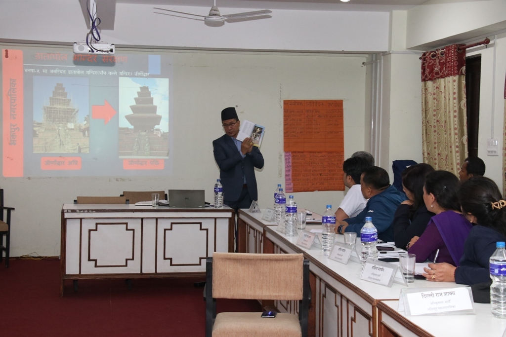 भक्तपुर नगरपालिकाको संक्षिप्त परिचयसहितको प्रस्तुतीकरण देखाउँदै प्रमुख प्रजापतिले स्थानीय तह स्रोत र साधनको अधिकत्तम प्रयोग हुने ठाउँ भएको बताउँदै देशका ७५३ वटै स्थानीय तहमा एउटै कानुन र ऐन– नियम भए पनि काम गर्ने शैली र समस्याहरू पालिकापिच्छे फरक फरक हुने बताउनुभयो ।