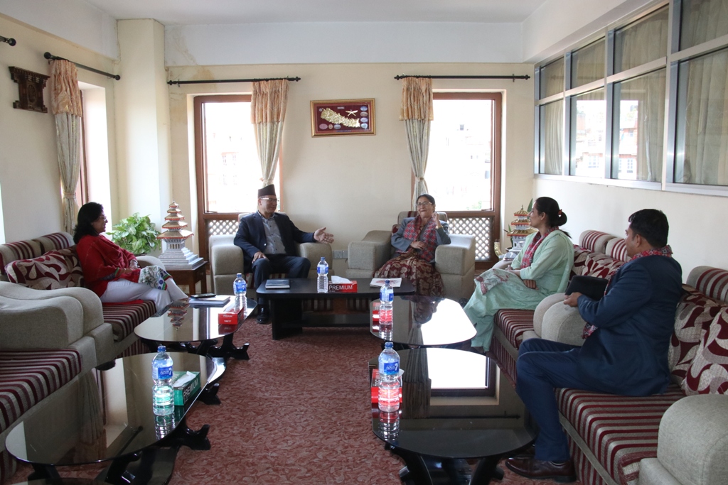 राष्ट्रिय सभाका उपाध्यक्ष उर्मिला अर्यालले भक्तपुर नगरपालिकाका प्रमुख सुनिल प्रजापतिसँग आज भनपा सभाकक्षमा भेट गर्नुभयो । नगर प्रमुख प्रजापतिले उपाध्यक्ष अर्याललाई सांस्कृतिक नगरी भक्तपुरमा स्वागत गर्दै भक्तपुर नपाको कार्य सम्पादनबारे विस्तृतमा अवगत गराउनुभयो । भेटमा उहाँहरुबीच देशको समसामयिक राजनीतिक विषयमा समेत कुराकानी भयो ।