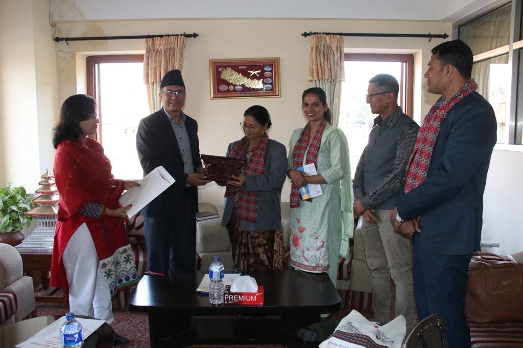 प्रमुख प्रजापतिले उपाध्यक्ष अर्याललाई भक्तपुरको प्रसिद्ध ‘मयुरको झ्याल’ र भक्तपुर नपाका प्रकाशनहरु उपहारस्वरुप प्रदान गर्नुभयो ।