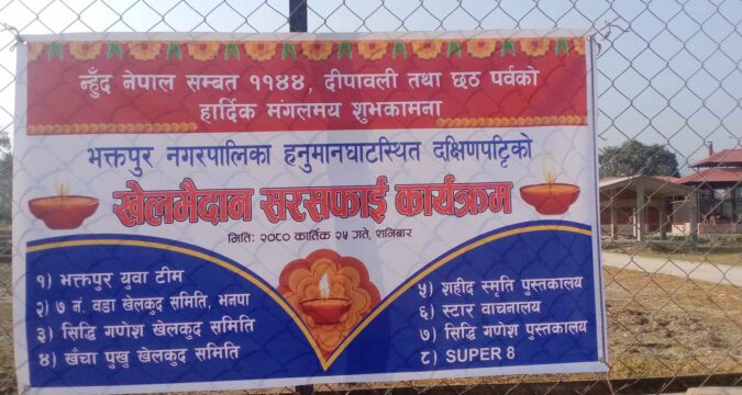 स्थानीय भक्तपुर युवा टिम, भक्तपुर नगरपालिका ७ नं वडा खेलकुद समिति, सिद्धि गणेश खेलकुद समिति, खंँचा पुखु खेलकुद समिति, सहीद स्मृति पुस्तकालय, स्टार वाचनालय, सिद्धि गणेश पुस्तकालय, सुपर ८ लगायतका संघसंस्थाका पदाधिकारीहरुले संयुक्त रुपमा सरसफाई गरेका हुन् ।