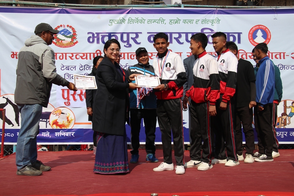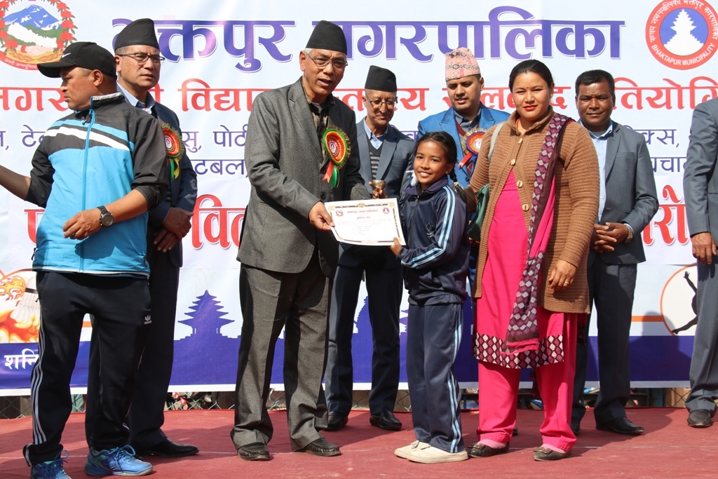 भक्तपुर नगरपालिकाको आयोजनामा २०८० माघ २१ गतेदेखि माघ २७ गतेसम्म सञ्चालित भक्तपुर नगरव्यापी विद्यालयस्तरीय खेलकुद (टेबुलटेनिस, भलिबल, फुटबल, कबड्डी, खो—खो, एथ्लेटिक्स, बुद्धिचाल, ब्याडमिन्टन, कराँते, उसु, तेक्वान्डो, पोर्टबल, जिम्नास्टिक, कसिमला पाँय र बाघचाल) प्रतियोगिता माघ २७ गते शनिबार सम्पन्न भयो ।