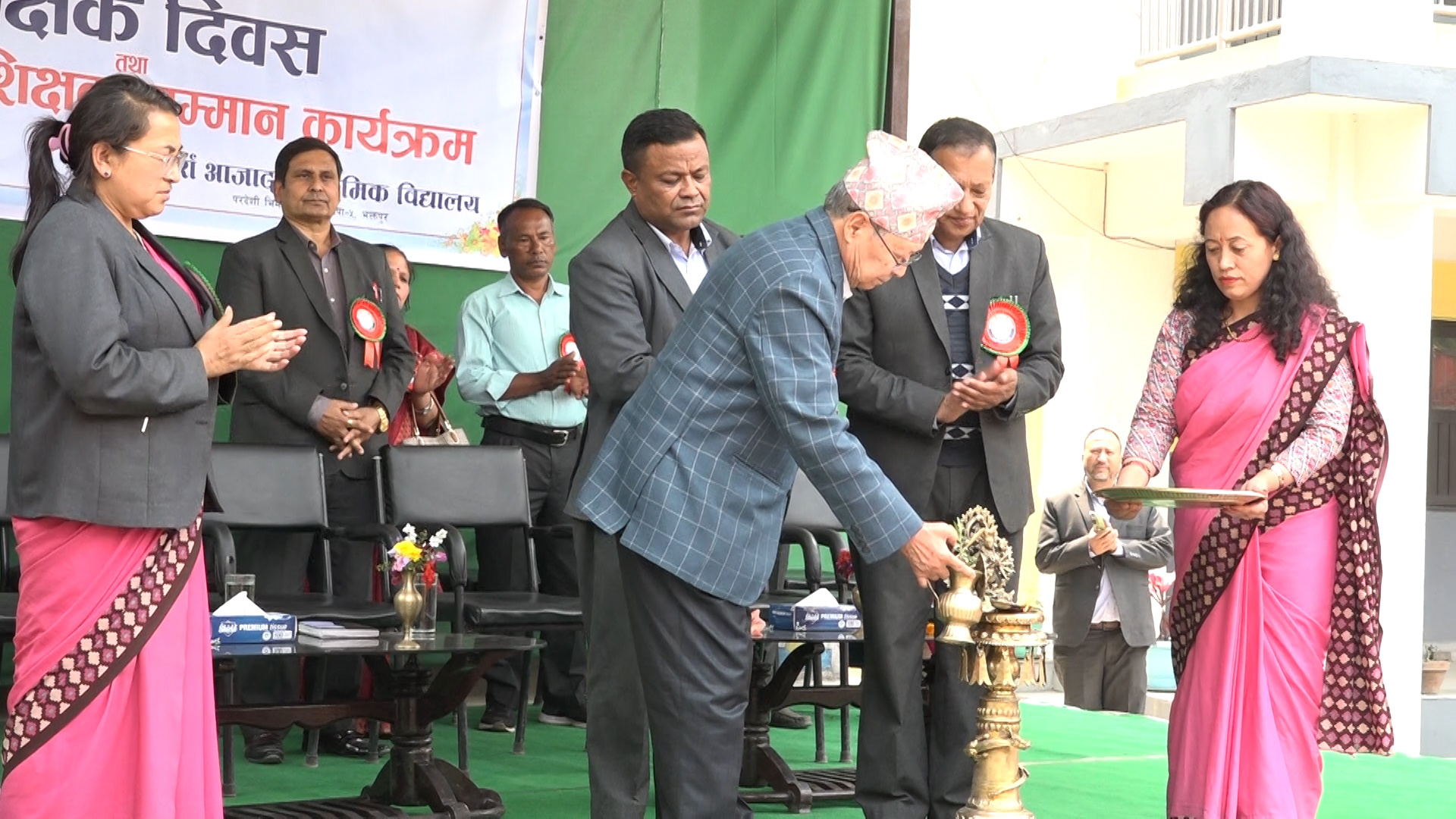 राष्ट्रिय शिक्षक दिवसको अवसरमा भक्तपुरका सामुदायिक विद्यालयका शिक्षक शिक्षिकाहरु सम्मानित भएका छन् । सार्वजनिक माध्यमिक विद्यालय, संयुक्त परीक्षा समिति भक्तपुरको आयोजनामा आज आदर्श आजाद माविको प्रांगणमा आयोजिता शिक्षक दिवस समारोहको उद्घाटन गर्नुृ हुँदै नेपाल मजदुर किसान पार्टीका अध्यक्ष एवं वरिष्ठ राजनीतिज्ञ नारायणमान विजुक्छेंले समितिमा आवद्ध रहेका १६ वटा सामुदायिक विद्यालयबाट सेवा निबृक्त भएका शिक्षक, शिक्षिकाहरुलाई सम्मान पत्र प्रदान गर्दै नयाँ पुस्तालाई देश, काल, परिवेश बारे सुसूचित गर्न सके मात्रै देशको सार्वभौमिकता रक्षा गर्न सकिने धारणा व्यक्त गर्नुृ भयो । विद्यार्थीहरुलाई खेलकूदमा सहभागि गराउनु पनि शत्रुसँग कसरी भिड्ने भन्ने शिक्षा भएको चर्चा गर्दै अध्यक्ष विजुक्छेले इजरालयद्वारा प्यालेस्टानिमाथि कसरी आक्रमण गयो? कस्तो दुःख पायो ?भन्ने विषयमा विद्यार्थीहरुलाई पनि जानकारी दिन सकेमात्रै भविष्यमा हुन सक्ने युद्धको जोखिमबाट देशलाई बचाउन सकिने धारणा राख्नु भयो । उहाँले शिक्षकहरु प्राज्ञिक क्षेत्र भएको उल्लेख गर्दै सरकारले शिक्षकहरुलाई हेर्ने दृष्टिकोण फरक हुनुपर्नेमा जोड दिनु भयो ।