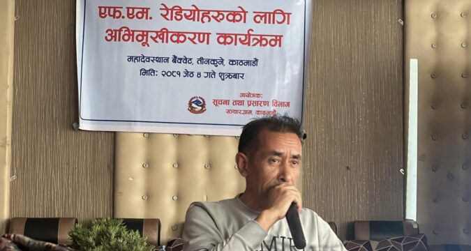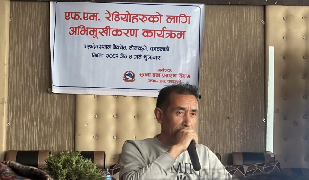 सूचना तथा प्रसारण विभागले अनलाईनबाटै एम.एम. रेडियो दर्ता, लाइसेन्स, इजाजत पत्र नविकरण तथा अध्याबधिक गर्ने प्रकृयाहरु बारे काठमाण्डौमा एक दिने अभिमुखिकरण कार्यक्रम आयोजना गरेको छ । एफ.एम. ऐडियोहरुको दर्ता र नविकरणकालाागि सधै स्थानीय नगरपालिका, जिल्ला हुलाक, प्रदेश सरकार र सूचना तथा प्रसारण विभागमा डौड्नुपर्ने बाध्यतालाई सहजीकरण गर्ने उदेश्यले पछिल्लो विकसित प्रविधि तथा सञ्चार मन्त्रालयको नीतिगत व्यवस्थाहरु बारे जानकारी दिने उदेश्यले पनि सो तालिम आयोजना गरेको विभागका प्राविधिक सुबोध नेपालले जनाएको छ। उहाँले एमएम रेडियोको प्रसारण क्षेत्र बारे जानकारी दिएको थियो भने कानुन अधिकृत प्रतिक्षा केसीले एम.एम सञ्चालन सम्बन्धि कानूनी व्यवस्था, ईन्जिनियर भरत दानकोटीले अनलाई प्रणालीमा रेडियो यन्त्रको लाइसेनस सम्बन्धी कार्य, ईन्जिनयर मनिषा शर्माले अनलाई प्रणालीमा प्रसारण इजाजत पत्र सम्बन्धी जानकारी दिएका थिए । विभागका कार्यबहाक महानिर्देशक भरत गौतमले एफ.एम. रेडियो दर्ता नविकरण र अध्यावधिक कार्यलाई सहजिकरणकालागि सो अभिमुखिकरण कार्यक्रम आयोजना भएको प्रष्ट्याउदै उहाँले सञ्चालकहरुका साझा समस्या र गुनासाहरुलाई संकलन र संबोधनकालागि समेत सो अभिमुखिकरण कार्यक्रम आयोजना भएको बताउनु भयो । सो अवसरमा एफ.एम. रेडियो नविकरणको सहजीकरणका नाममा संगित रोयल्टीमा मुच्छेर नविकरण प्रकृयामा थप बाढा पुर्याउने कार्य भएको भन्दै सहभागि एफ.एम. रेडियो सञ्चालकहरुले विरोध जनाएका थिए । नविकरण प्रकृयामा रोयल्टी तिरेपछि मात्रै प्रकृया अधि बढाउने प्रावधान गतल भएको भन्दै कार्यबाहक महानिर्देशक गौतमलाई ज्ञापन पत्र समेत बुझाएका थिए ।