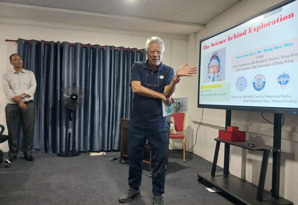 कार्यक्रममा उपस्थित तीस जना विद्यार्थीहरूलाई लक्षित गर्दै डा. वाङ होउ माङले अन्वेषण गरी नयाँ कुराहरू पत्ता लगाउँदाको सुखद् क्षणहरूको चर्चा गर्दै विद्यार्थीहरूलाई पनि अन्वेषणमा लाग्न प्रोत्साहन दिनुभयो । डा. वाङ होउ माङ सन् १९८६मा स्थापित चीन अन्वेषण तथा शोध समाजका अध्यक्ष हुनुहुन्छ।