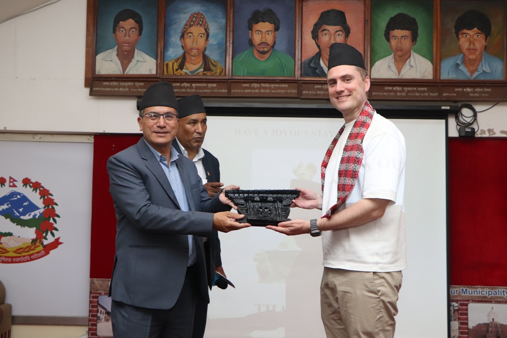सोही क्रममा उपप्रमुख रजनी जोशीले भक्तपुरको संक्षिप्त परिचय र नगरपालिकाले सम्पदा संरक्षणमा खेलिरहेको भूमिकाबारे आफ्नो प्रस्तुतीकरण देखाउनुभयो ।