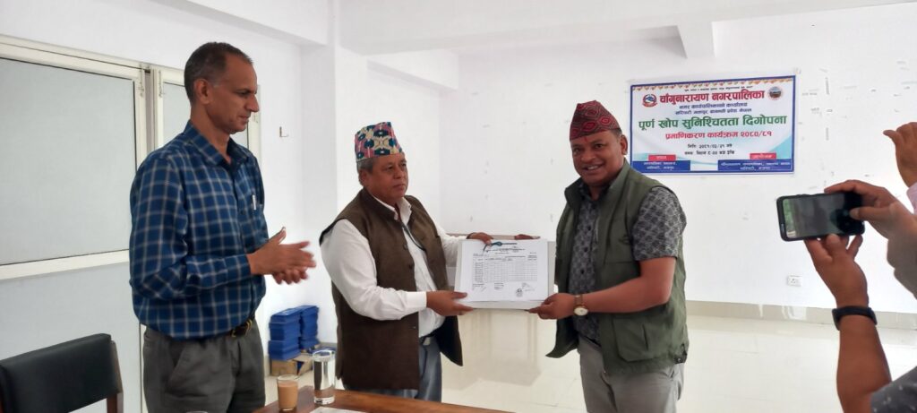चाँगुनारायण नगरपालिका आठौं वर्ष पूर्ण खोप सुनिश्चित नगर प्रमाणिकरण भएको छ । नगरमा रहेका ९४३ बालबालिकाहरुलाई पूर्ण खोप र ९७३ जनालाई लगातार खोप सुनिश्चित गरेको भन्दै चाँगुनारायण नगरपालिका स्वास्थ्य शाखा भक्तपुरले आज पूर्ण खोप सुनिश्चितता दिगोपना प्रमाणिकरण कार्यक्रम आयोजना गरेको हो । नगरलाई खोप सुनिश्चित प्रमाणिकरण गर्दै जिल्ला समन्वय समितिका प्रमुख एवं जिल्ला खोप संयोजक ईश्वर थापा , जनस्वास्थ्य कार्यालय भक्तपुरका प्रमुख अस्मिता ओझालाई चाँगुनारायण नगरपालिकाका नगर प्रमुख जीवन खत्रीले खोप सुनिश्चित प्रमाणिकरण रिपोर्ट प्रदान गरी सो कार्यक्रम आयोजना भएको थियो ।