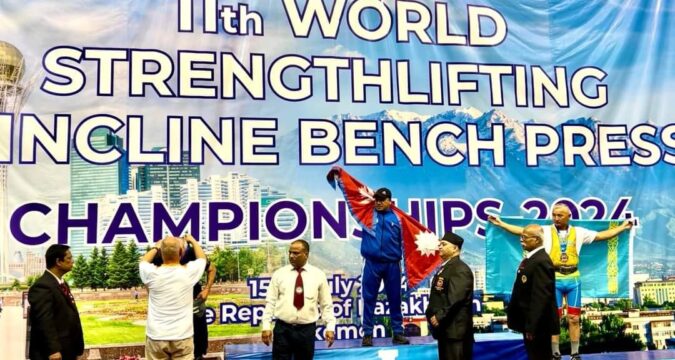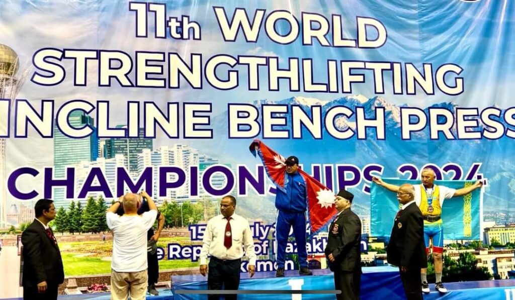 काजकस्थान मा सम्पन्न भएको एघारौँ अन्तर्राष्ट्रिय स्ट्रेन्थ लिफ्टिङ च्याम्पियनसिपमा नेपालले स्वर्ण पदक प्राप्त गरेको छ ।  १५ जुलाईदेखि १९ जुलाईसम्म सञ्चालन भएको स्ट्रेन्थ लिफ्टिङ प्रतियोगिता अन्तर्गत बेन्च प्रेसतर्फ विश्वभरका खेलाडीहरूलाई पछि पार्दै केदारेश्वर मान स्थापितले स्वर्ण पदक सुरक्षित गर्नुभएको हो। लामो समय खेलकुद क्षेत्रमा व्यतीत गरी मार्सल आर्टका ग्रान्ड मास्टरसमेत रहनुभएका स्थापितले यसअघि भारतमा भएको अन्तर्राष्ट्रिय स्ट्रेन्थ लिफ्टिङ च्याम्पियनसिपमा समेत नेपालको लागि पदक सुरक्षित गर्नुभएको थियो। यस प्रतियोगितामा नेपालबाट गएको टिमले करिब ११ वटा पदक प्राप्त गरेको समाचार छ भने खेलाडीहरू आज नेपाल फर्कने सूचना प्राप्त भएको छ।