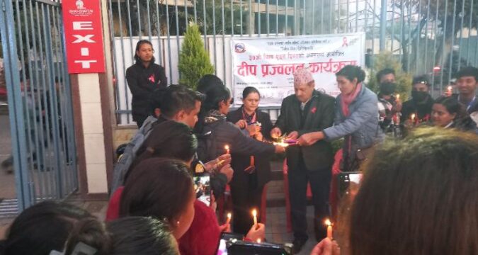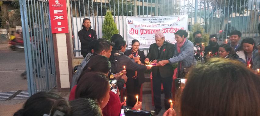 एड्स अन्त्यकालागि सबैको अधिकार सुनिश्चित गरौं नाराका साथ आज विभिन्न कार्यक्रम गरी ३७ औं विश्व एड्स दिवस मनाएको छ । सो अवसरमा जनसचेतना अभिवृद्धि गर्न भक्तपुरमा एचआईभि एड्सबाट दिवंगत भएकाहरुको स्मृतिमा मौनधारण तथा दीपावली गरी मनाएको छ । जनस्वास्थ्य कार्यालय भक्तपुरको आयोजना र विभिन्न सरोकारवाला निकायहरुको सहकार्यमा भक्तपुरको राधेराधेमा दिप प्रज्वलन गर्दै एचआईभी एड्सलाई सन् २०३० भित्रमा अन्त्य गर्ने अभियान सफल पार्न व्यापक जनचेतना अभिवृद्धिको आवश्यकतामा जोड दिएका थिए ।