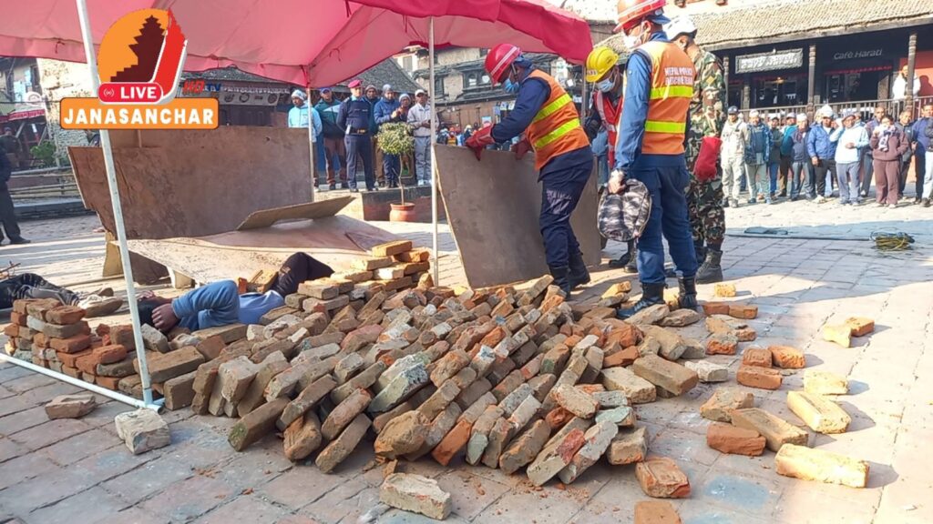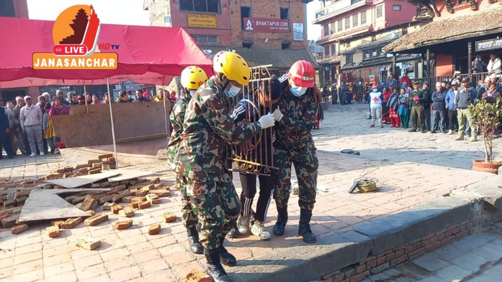 २७ औं राष्ट्रिय भूकम्प सुरक्षा दिवसको अवसरमा भक्तपुरमा कृत्रिम घटना अभ्यास