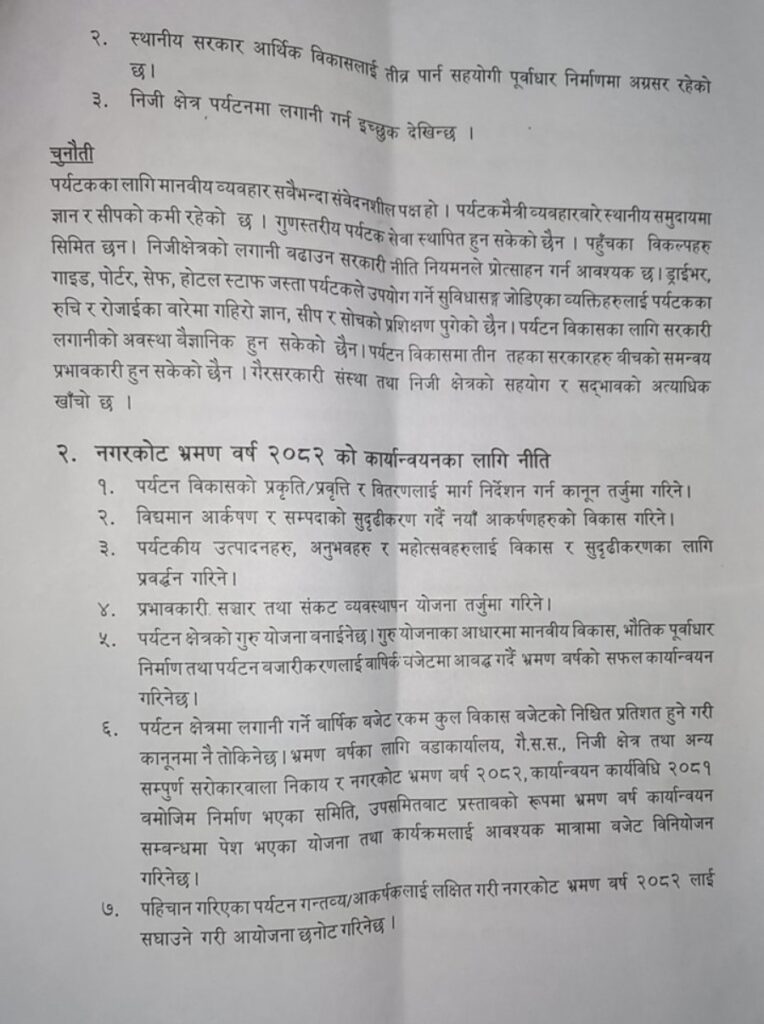 नगरकोट भ्रमण वर्ष कार्ययोजना २०८१ सार्वजनिक