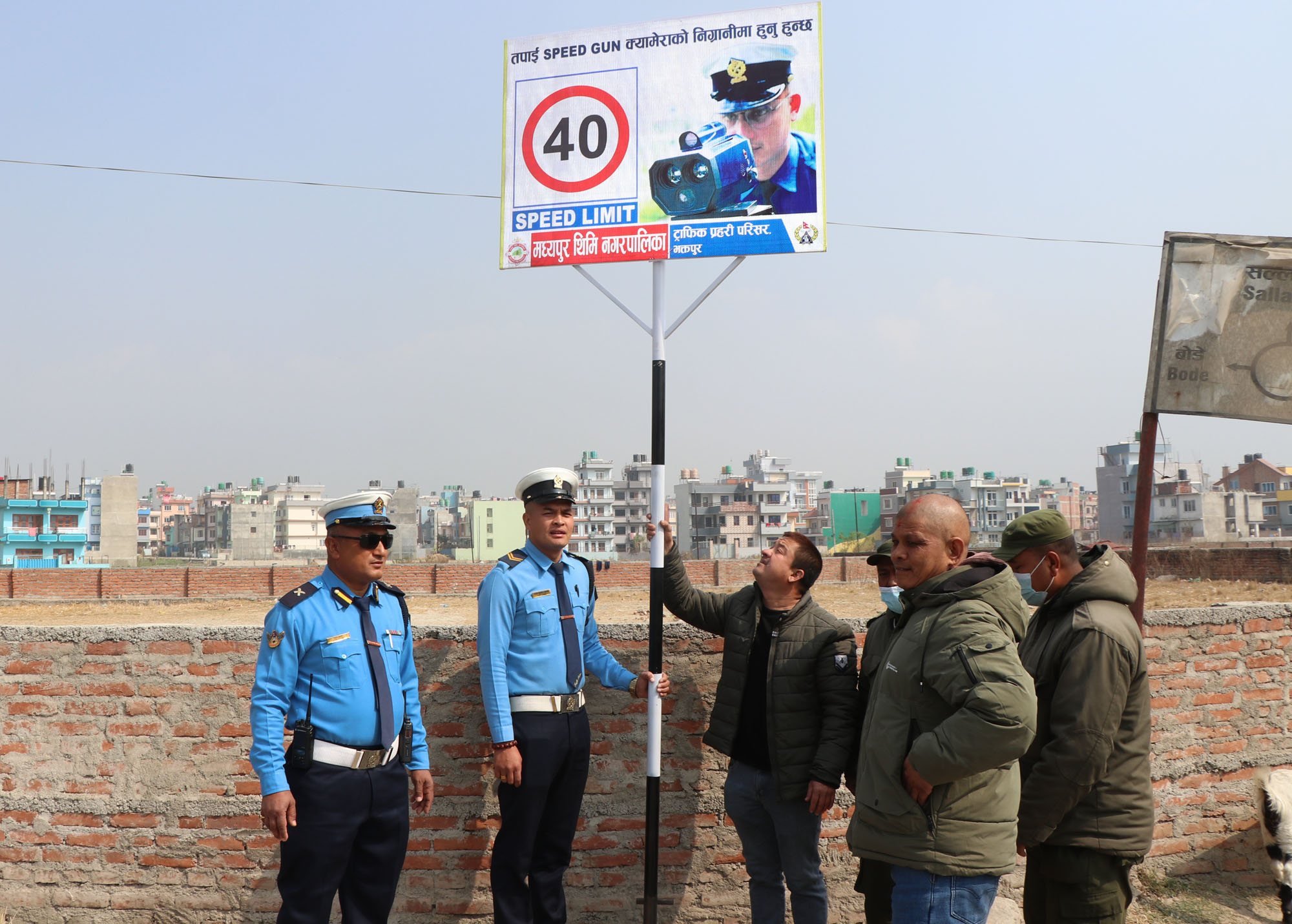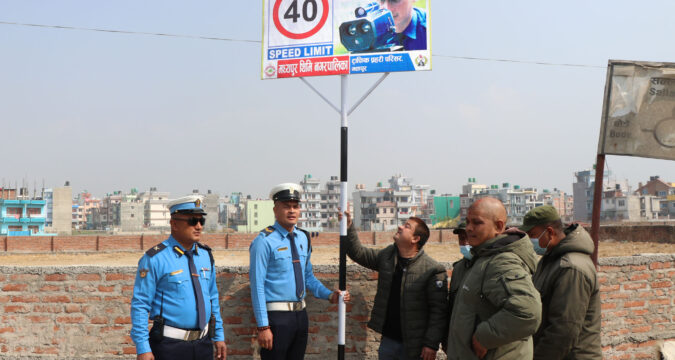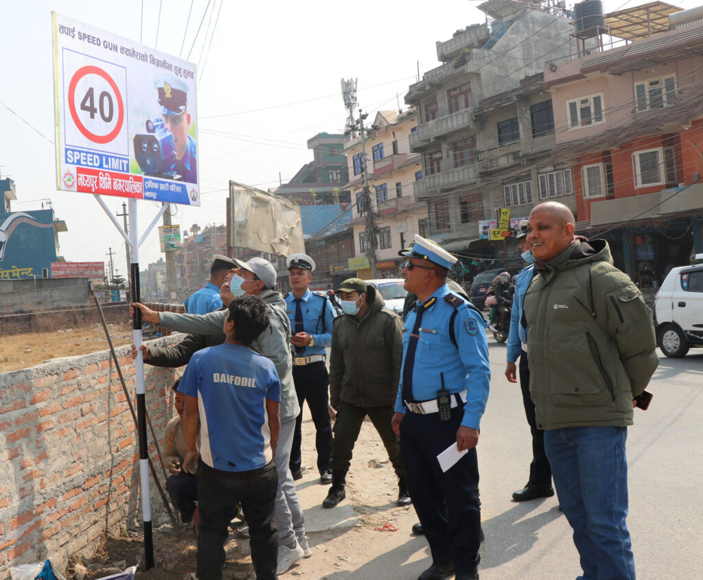 जिल्ला ट्राफिक प्रहरी परिसर भक्तपुरले मध्यपुरथिमि नगरपालिकाको संयोजन एवं सहयोगमा ट्राफिक प्रहरी, नगरपालिका, प्रहरी बृत्त थिमि, डिभिजन सडक कार्यालय भक्तपुर, नगर प्रहरीसमेतको टोलीले आज निकोसेरा चोकदेखि पेप्सीकोला मनोहरा पुलसम्म २० ठाउँमा तिब्र गति नियन्त्रण सम्बन्धि जनचेतना एवं सूचनामलक बोर्डहरु राखेको छ ।