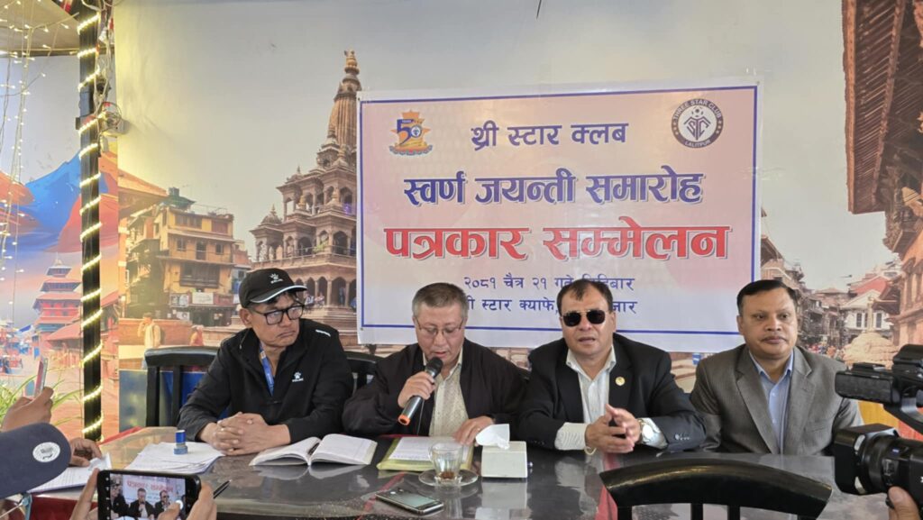 मंगलबजारमा आज पत्रकार सम्मेलन गर्दै क्लबले आफ्ना महत्वपूर्ण गतिविधिका साथै स्वर्ण वर्षका कार्यक्रमहरु सार्वजनिक गरेका छन् । २०३१ सालमा स्थापना भई ए डिभिजन फुटबल क्लवहरु मध्ये सक्रिय, प्रतिष्ठित र जनमानसमा समेत चिरपरिचित थ्री स्तार क्लवले चैत्र २३ गते शनिबार रक्तदान तथा स्वस्थ्य परिक्षण कार्यक्रम गरी स्वर्ण वर्षको शुभारम्भ गर्ने छन् । सोही दिन थ्री स्टारका पूर्व खेलाडीहरुबीच मैत्रीपूण खेल तथा मिलन कार्यक्रम आयोजना गर्ने छन् । दोश्रो चरणमा क्लवका खेलाडी, शुभचिन्तकहरुलाई सम्मान तथा अभिनन्दन कार्यक्रम तय गरेको छ । साथै सो अवसरमा हाल सम्म विजेता उपबिजेता भएका शिल्ड, ट्रफि प्रदर्शन पनि गरिनेछ भने अर्को चरणको कार्यक्रममा सांगितिक तथा नेवा भ्वय् कार्यक्रम तय भएको क्लबका अध्यक्ष ज्ञान बहादुर शाक्यले जनाएको छ । सो अवसरमा वितरित प्रेस विज्ञप्तिको पूर्णपाठ यसप्रकार छ ।
