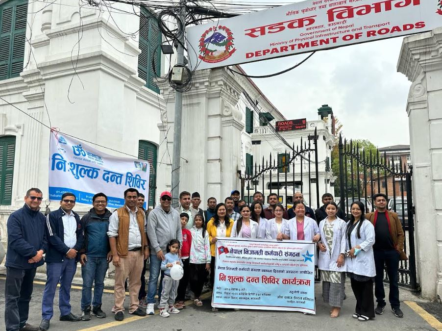 संगठनको स्थापना दिवसको अवसरमा सडक विभाग परिसरमा नेपाल निजामती कर्मचारी संगठन भौतिक पूर्वाधार तथा यातायात मन्त्रालय विभागीय कार्यसमितिको आयोजनामा उक्त शिविर संचालन गरिएको हो । ओम समाज डेन्टल हस्पिटलको सहकार्य रहेको उक्त एक दिने निःशुल्क दन्त शिविरमा लगभग १ सय २० जनाले दन्त स्वास्थ्य जाँच गराएका थिए ।