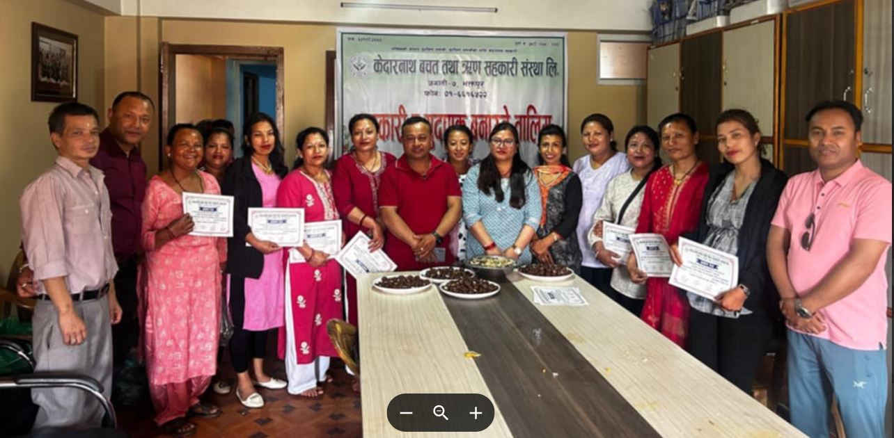 भक्तपुर, १३ बैशाख । केदारनाथ बचत तथा ऋण सहकारी संस्था लि.ले एक दिने पुष्टकारी र गुदपाक बनाउने तालिम संस्थाको सभाकक्ष जगातीमा शनिवार एक समारोह बीच सम्पन्न भयो ।