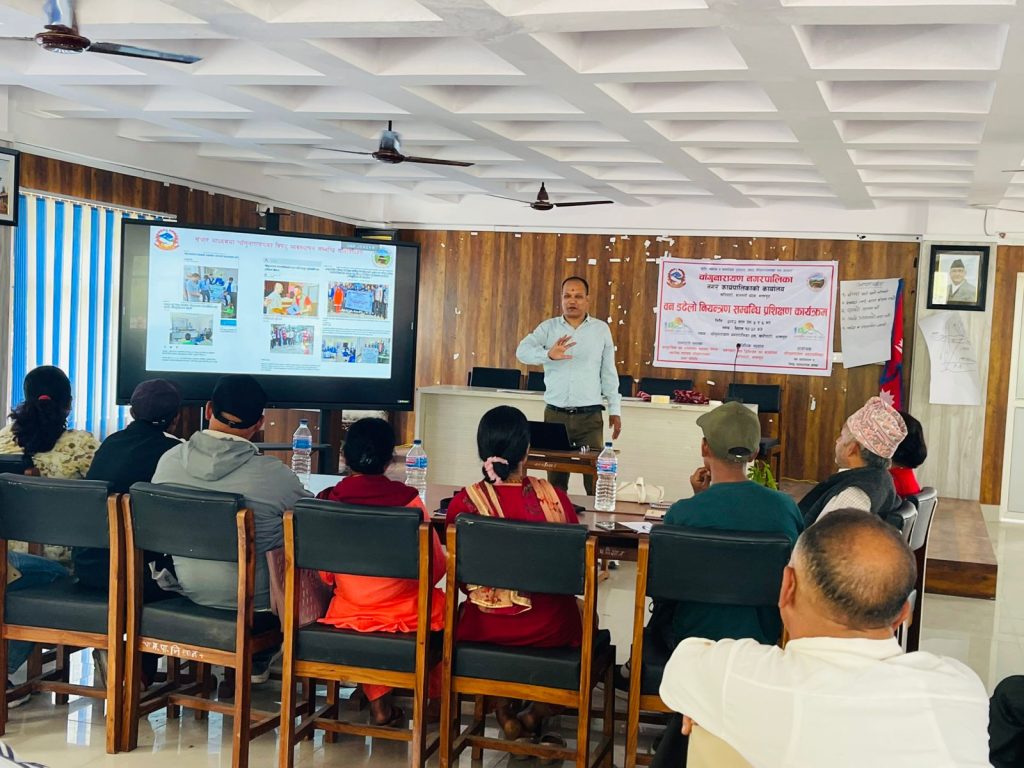 चाँगुनारायण नगरपालिका भित्रका सामुदायिक वन उपभोक्ता समितिका सदस्यहरुलाई बन डढेलो नियन्त्रण सम्बन्धि प्रशिक्षण सञ्चालन ।