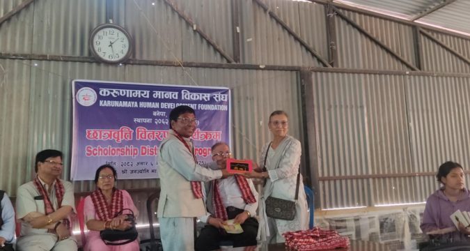 करुणामय मानव विकास संघले विभिन्न ठाउँका ८७ जना गरिब र जेहेन्दार विद्यार्थीलाई छात्रवृत्ति वितरण गरेको छ । काभ्रेको बनेपास्थित जनज्योति मावि जनागालमा सम्पन्न भएको कार्यक्रममा सामुदायिक विद्यालय, उच्च मावि तथा कलेजमा अध्ययनरत विद्यार्थीलाई स्कुल ब्याग, ड्रेस, जुत्तालगायतका सामग्री वितरण गरेको हो । समाजिक सद्भाव कायम राख्दै करुणा र नैतिकता जागृत गर्न संघले करिव दुई दसकदेखि सामाजिक काम गर्दैै आएको छ ।