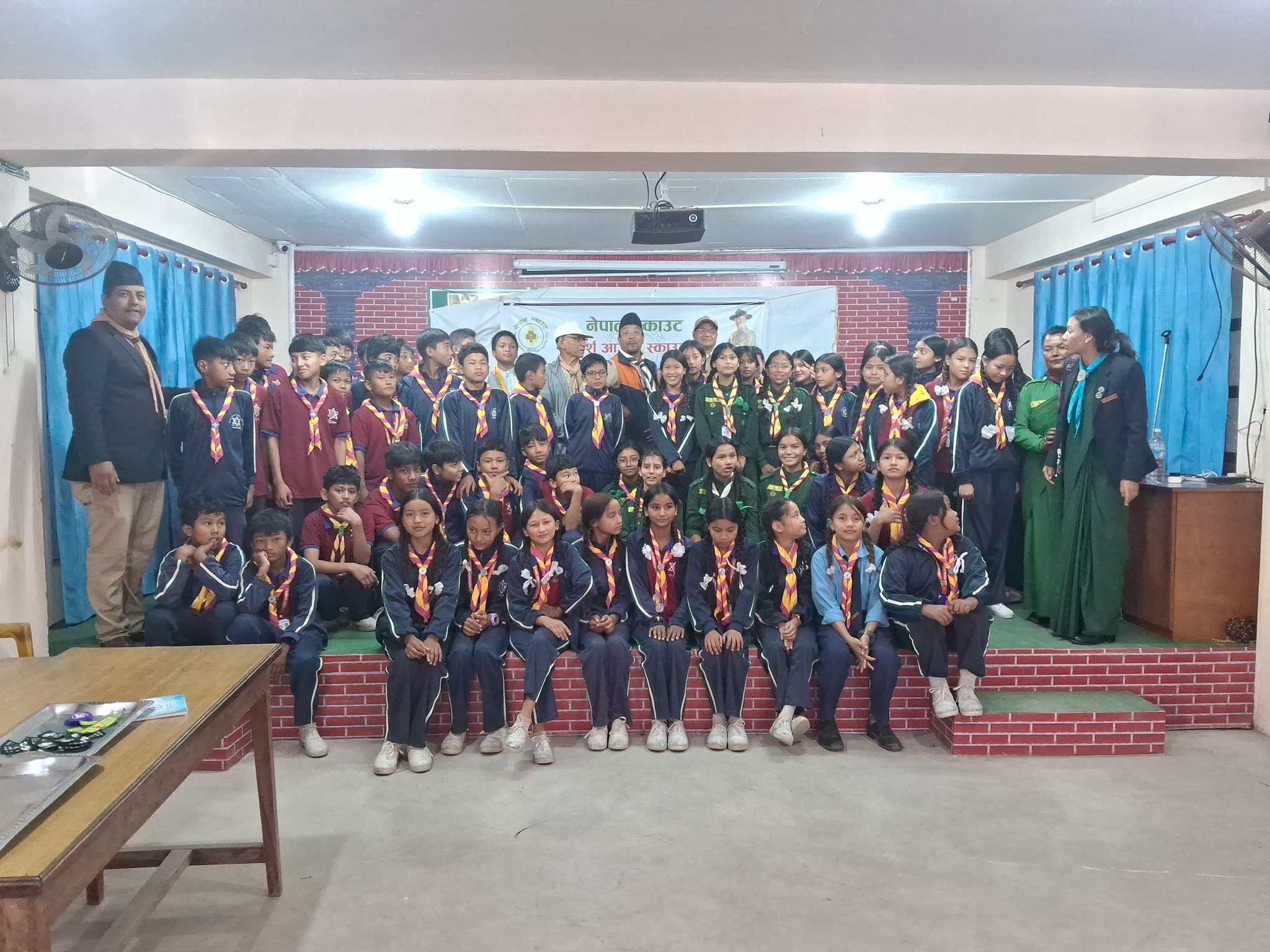 भक्तपुर नगरपालिकाका उपप्रमुख तथा भक्तपुर नगरका प्रमुख स्काउट रजनी जोशीको प्रमुख आतिथ्यतामा भएको समारोहमा ५८ जना नयाँ विद्यार्थीहरुलाई सदस्यता बायजसहित दिक्षा दिइएको थियो ।