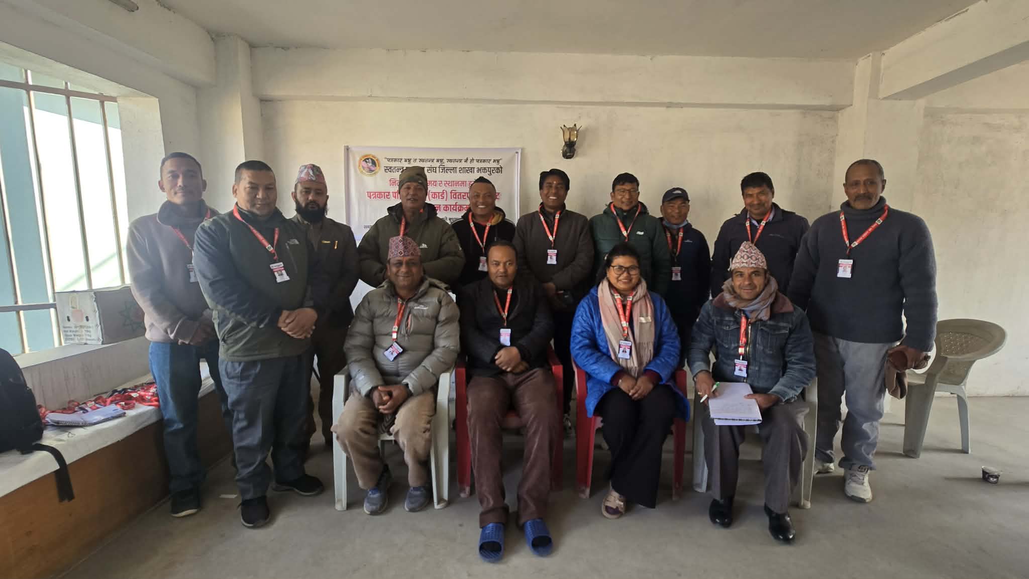 भक्तपुर । स्वतन्त्र पत्रकार संघ जिल्ला शाखा भक्तपुरको आयोजनामा बुधबार भक्तपुरमा पत्रकार परिचयपत्र (कार्ड) वितरण, भेटघाट तथा चियापान कार्यक्रम सम्पन्न भएको छ । कार्यक्रममा संघका नवनिर्वाचित अध्यक्ष रेणु त्वानाबासुले सदस्य पत्रकारहरुलाई परिचयपत्र वितरण गरिन् । त्यस अवसरमा संघलाई अगाडि वढाउने विषयमा पनि छलफल भयो । छलफलमा उपाध्यक्ष मणिराम लामिछाने, सचिव विकु तजले, सहसचिव राजन कार्की, निवर्तमान अध्यक्ष सुरेश सैंजू, सल्लाहकार कृष्ण किसीलगायतले विभिन्न सुझाबहरु दिए । संघमा झण्डै तीन दर्जन सदस्यहरु रहेका छन् ।